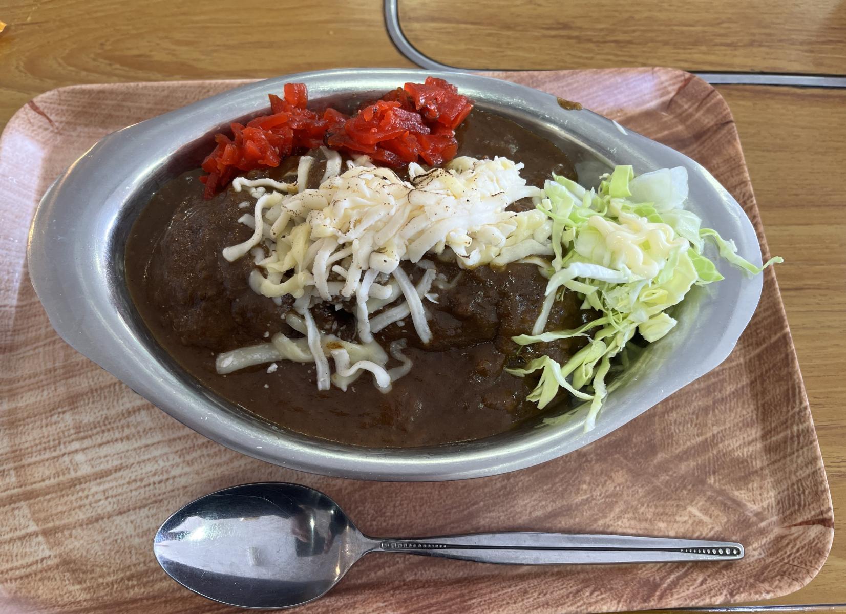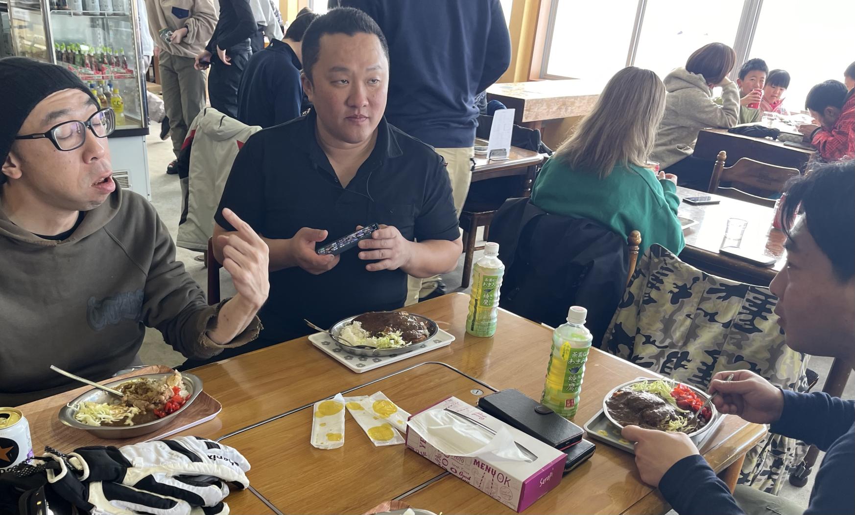 昼食はスキー一式をレンタルした「食堂ふじ」へ。この店では、富山市の人気カレー店「かれえてい」のメニューが味わえる。迷わずカツカレーのチーズトッピングという自分の定番を注文、額から落ちる汗と鼻水を拭いながら、大口を開けて熱々のカレーをがっつく。カレールーとチーズの濃厚な口当たりが食欲をさらに刺激し、後からピリリと来るスパイスに冷えた身体が温まっていく。