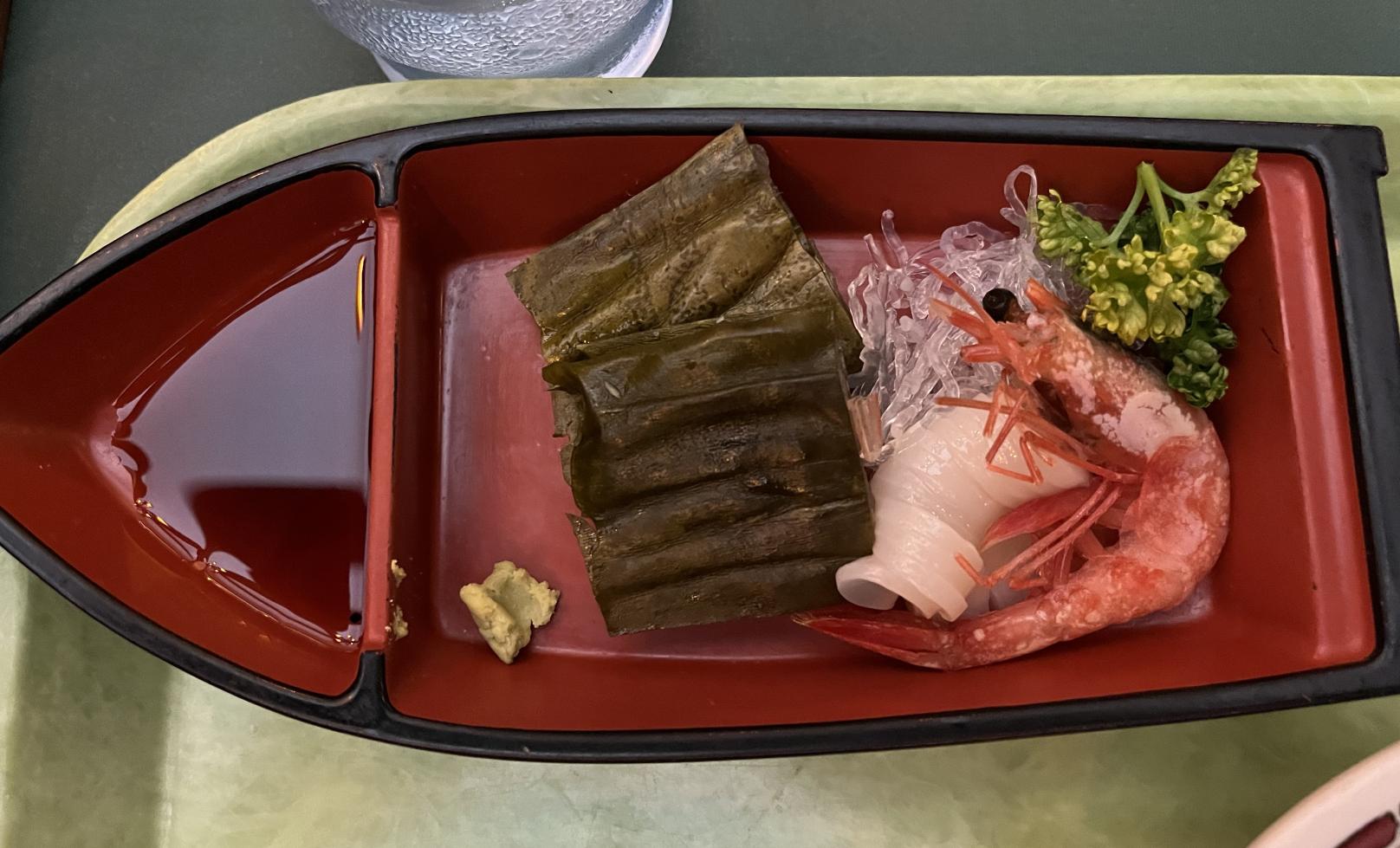 刺身はサスの昆布締めとイカ、甘エビで、酒が進む加速装置と化していく。