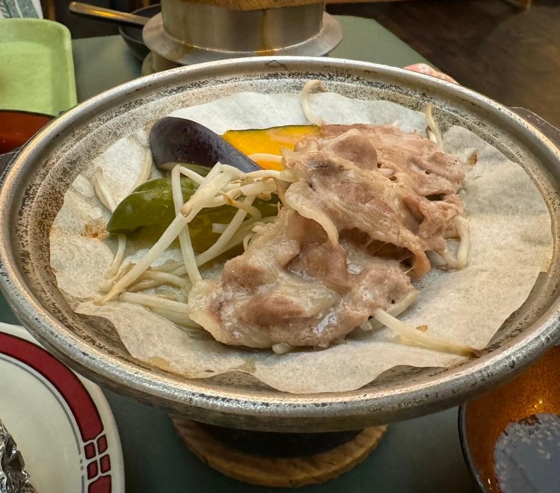 黒部名水ポークの陶板焼きも、しっかりとした豚肉の食べ応えと脂の甘味を感じながら食べ進める。