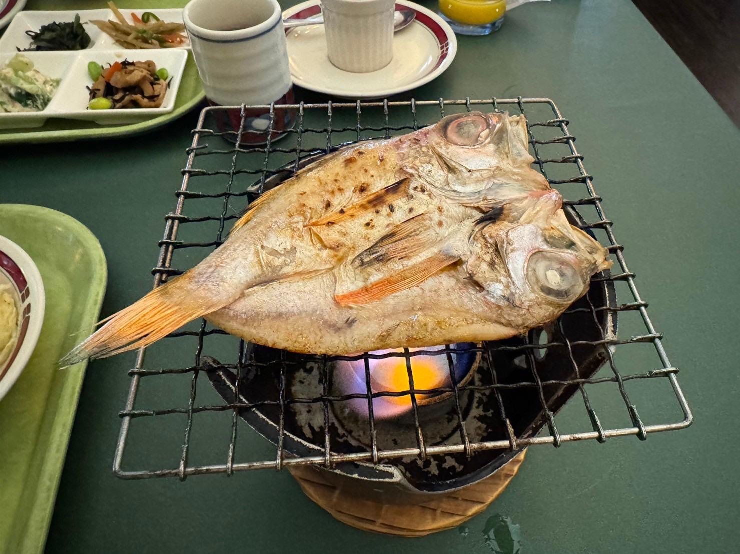 高級魚ノドグロの干物が朝から登場して、とても嬉しい。上質な脂の乗った一品をおかずにご飯をおかわりし、デザートとコーヒーで心を整えて、夢見心地からの目覚めを迎えた。