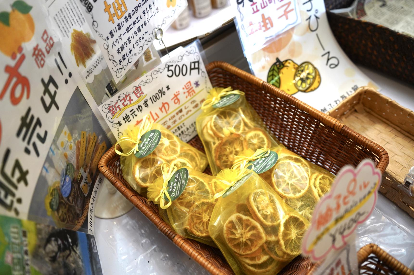 東谷(ひがしだに)地区でとれた地元の農産物も取り扱っています。玄米や山菜など旬のものが購入できるほか、立山町の多様で豊かな産品を知るきっかけにもなります。100%ラフランスジュースや柚子加工品、実は立山町イチオシの特産品なんです。カブトムシのみならず、自然ふれあい館は地元生産品の加工流通にも力を入れており、集落の活性化に貢献しています。商品は季節によって変わるため、道の駅感覚で食材を買い求めにいくのもオススメです!