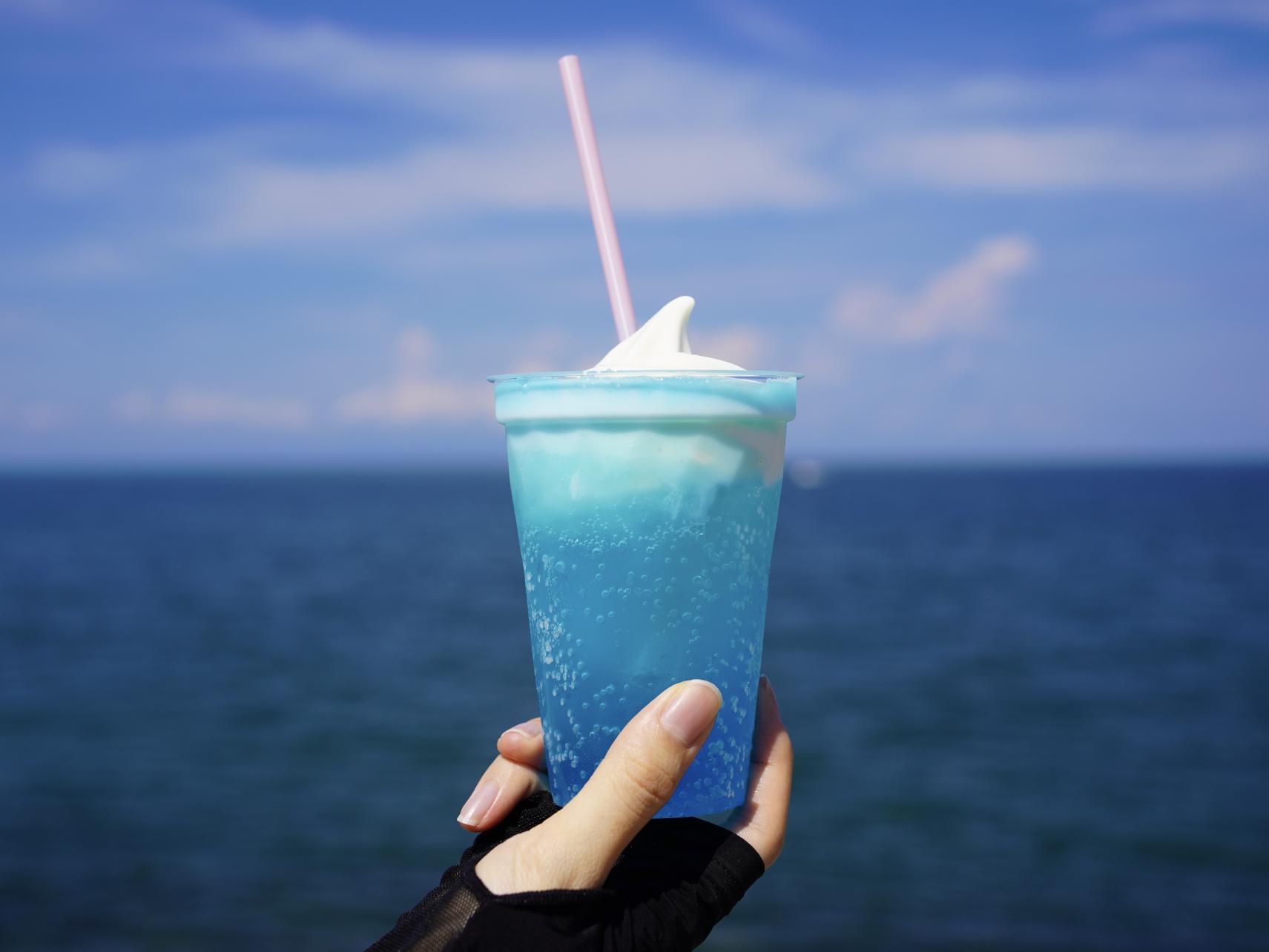爽やかなブルーのフロートは、滑川の海に映えるイチオシメニュー。
