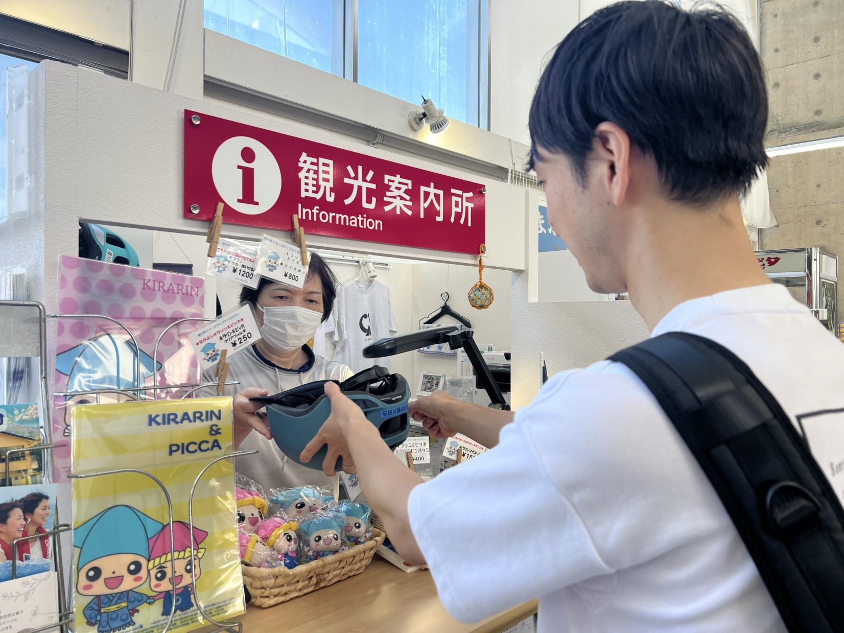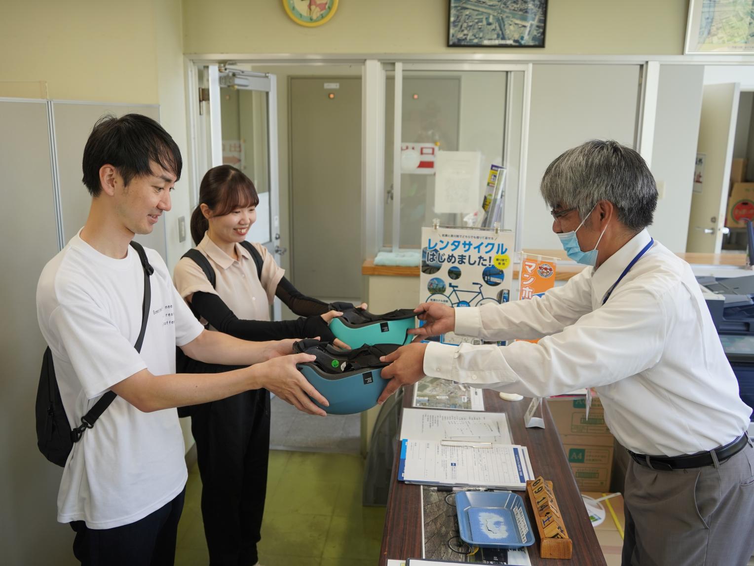 1階の窓口でサインを済ませ、自転車とヘルメットをレンタルします。