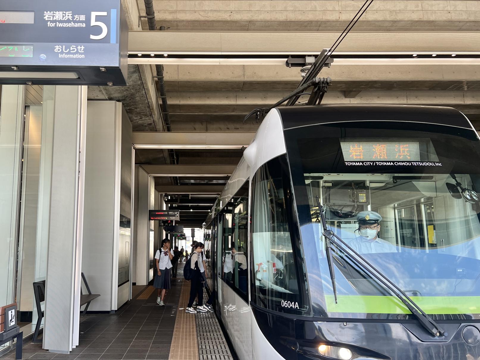 まずは市内電車 富山港線に乗り、終点の岩瀬浜駅まで行きます。