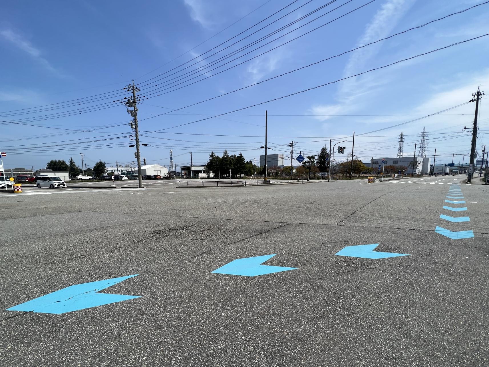 地図を見なくても、路面の青い線に従えば迷う心配はありません。