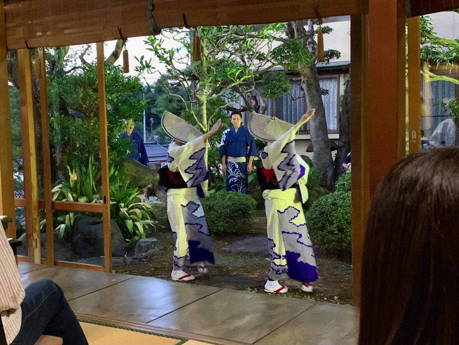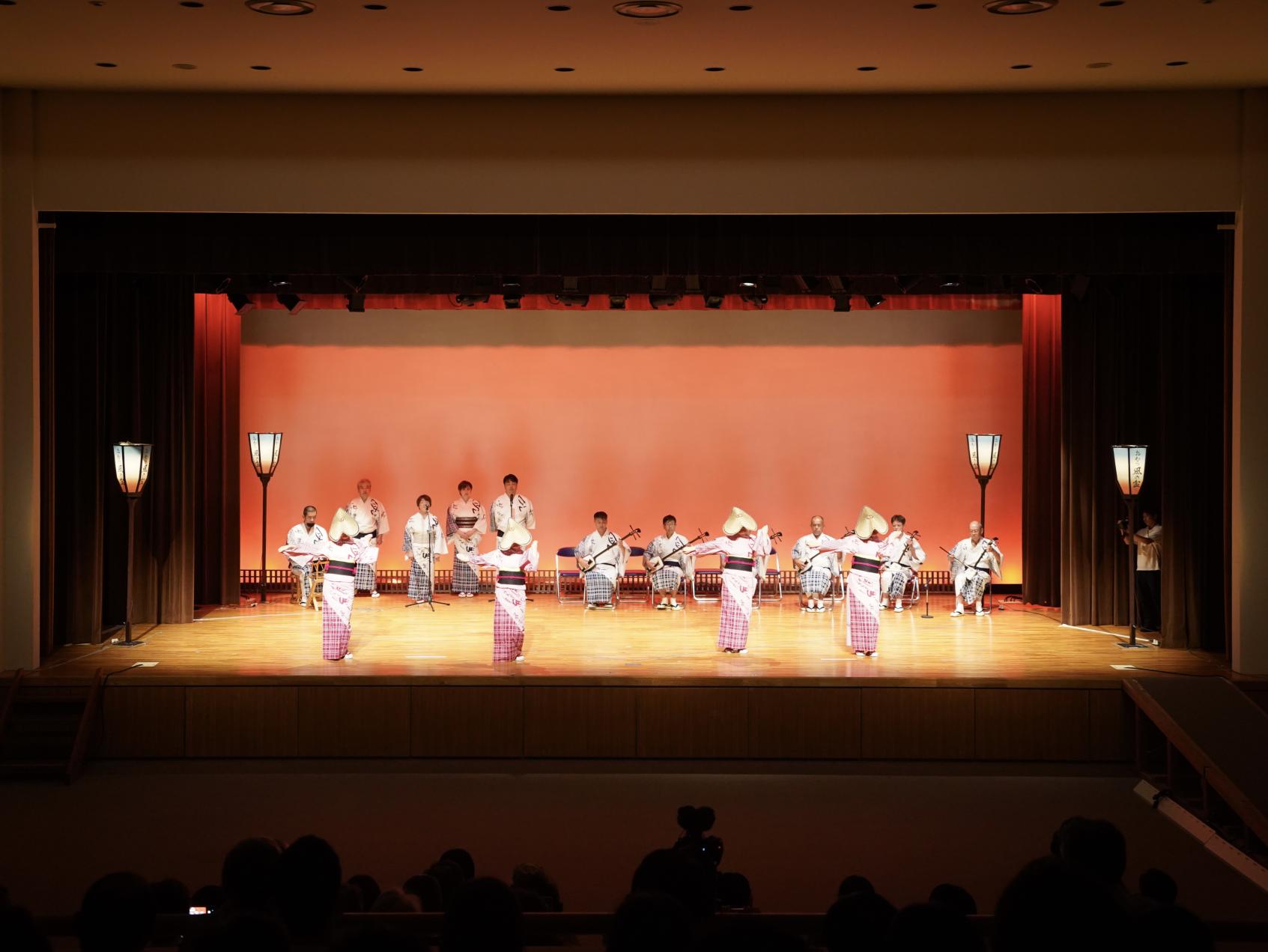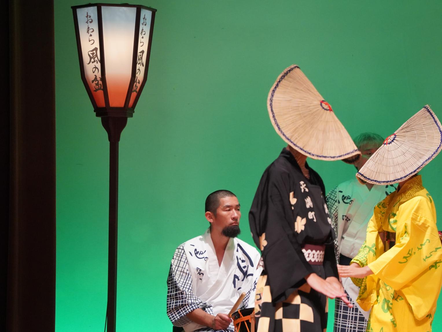 夜に開催されるおわらですが、まだまだ暑いのが実際のところ。冷房の効いた室内で、座って鑑賞できるのは身体に優しく、グッドポイントです。