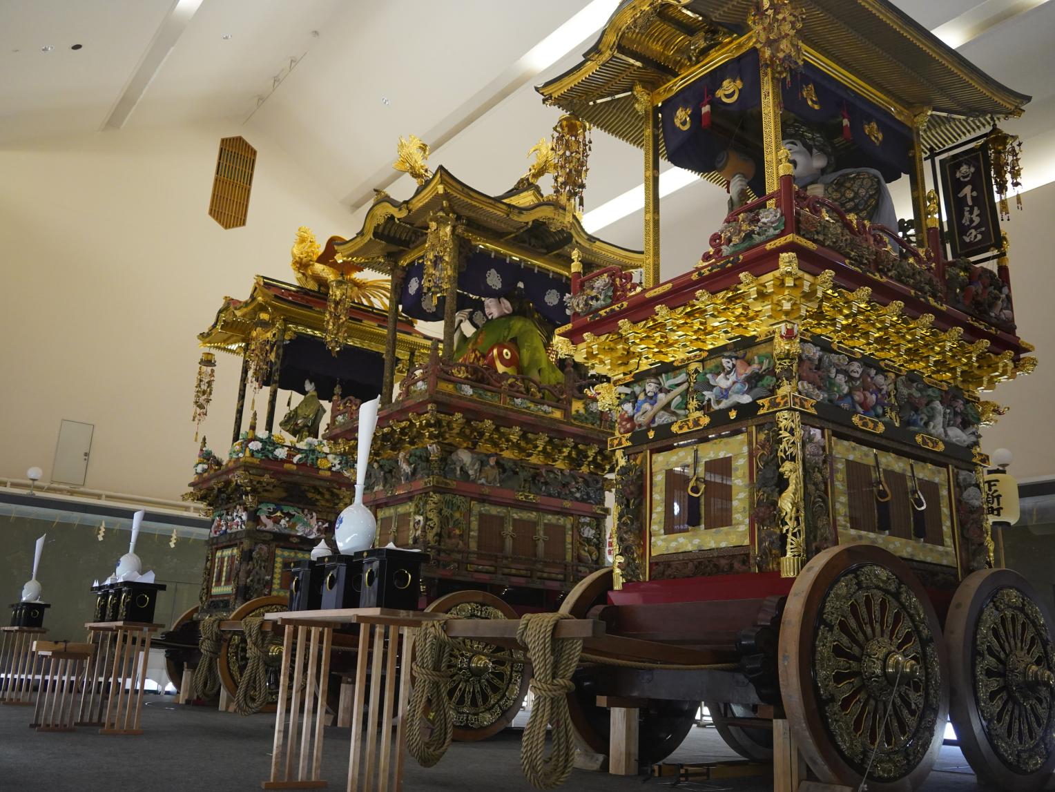 ステージ鑑賞に加えて、館内の八尾曳山展示館では、5月3日の八尾曳山祭で実際に曳き回される、豪華絢爛な曳山を見ることができました。