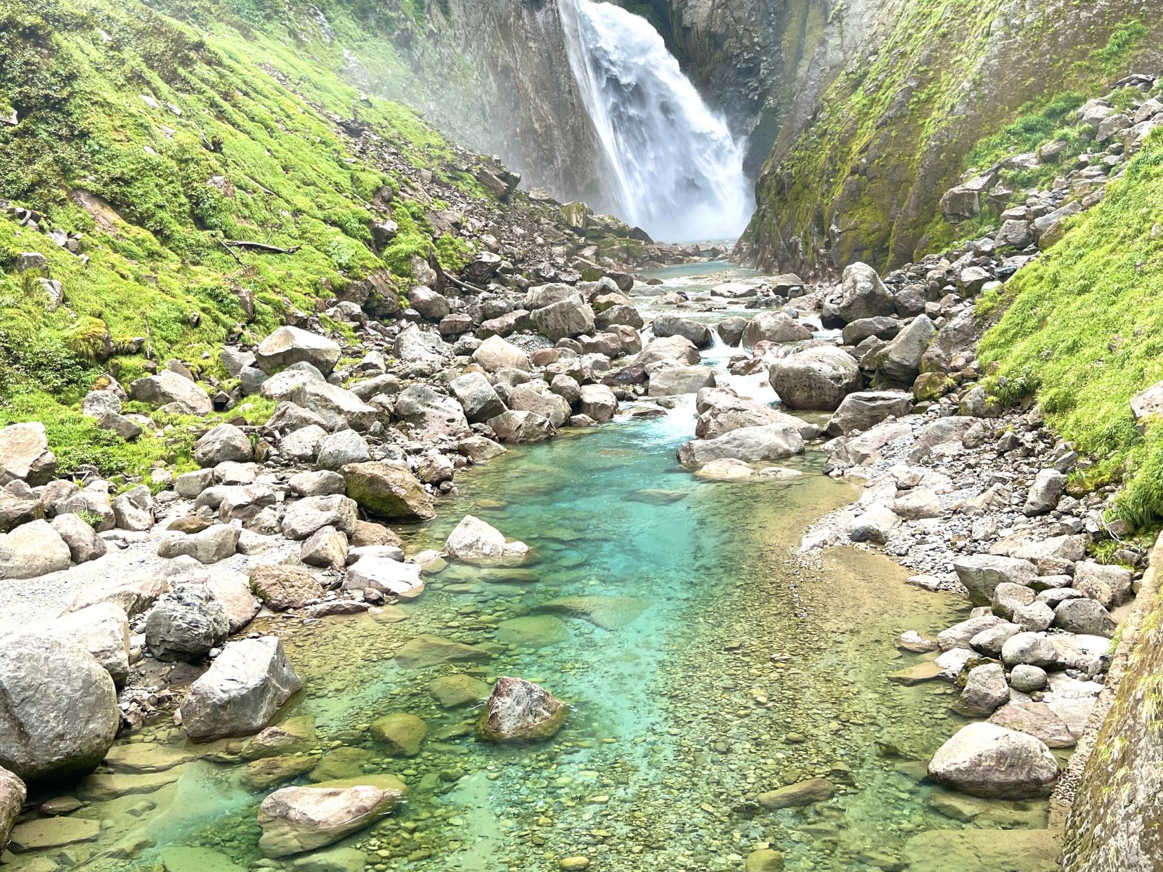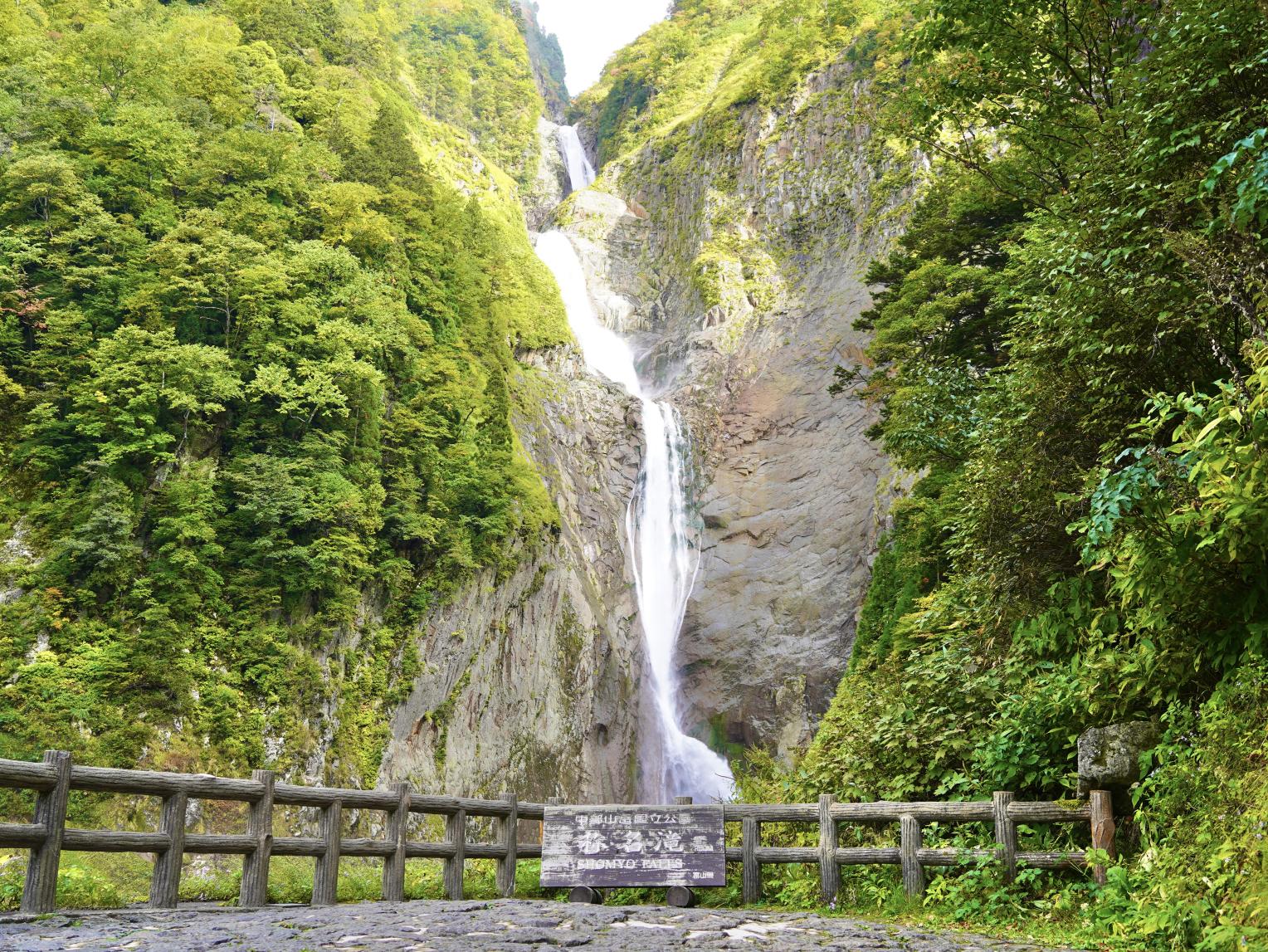 最初はやっぱりここ、称名滝(しょうみょうだき)。立山町が誇る巨大な滝は、あの東京タワーを超える高さ。