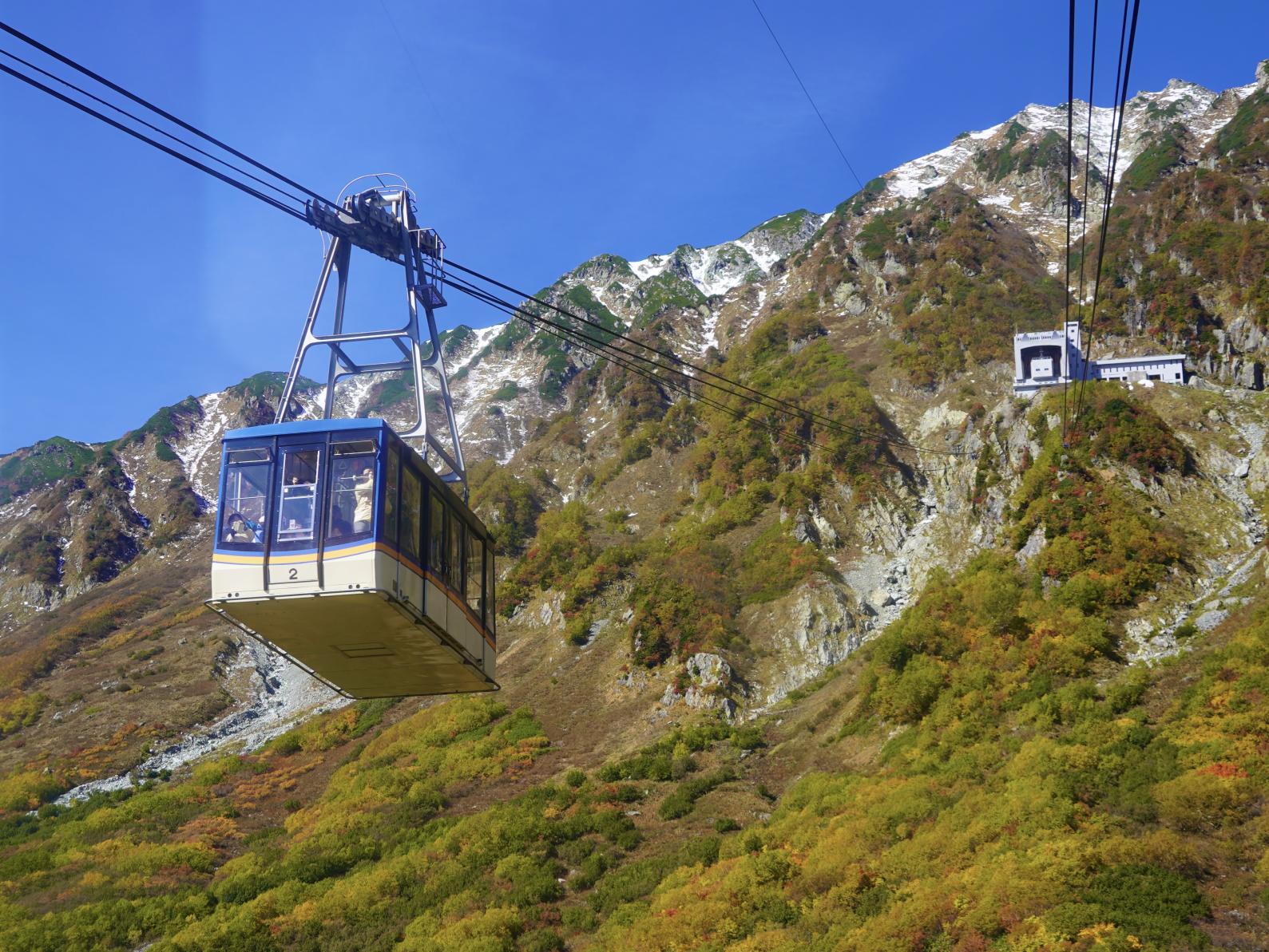アルペンルート上の大観峰と黒部平を結ぶ、日本最長のワンスパン式ロープウェイがこちら。