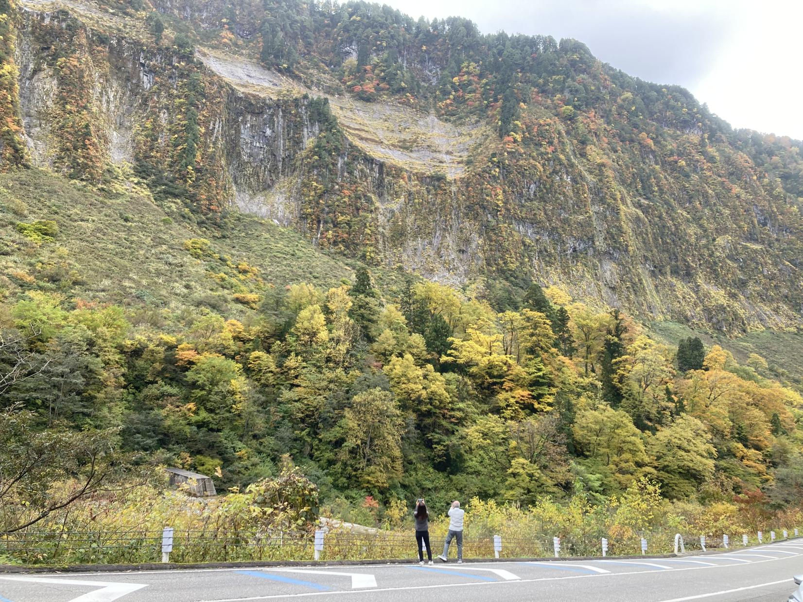 立山駅から称名滝へ向かう道中、右手に現れる断崖がそれです。山ではなく、岩なのです!