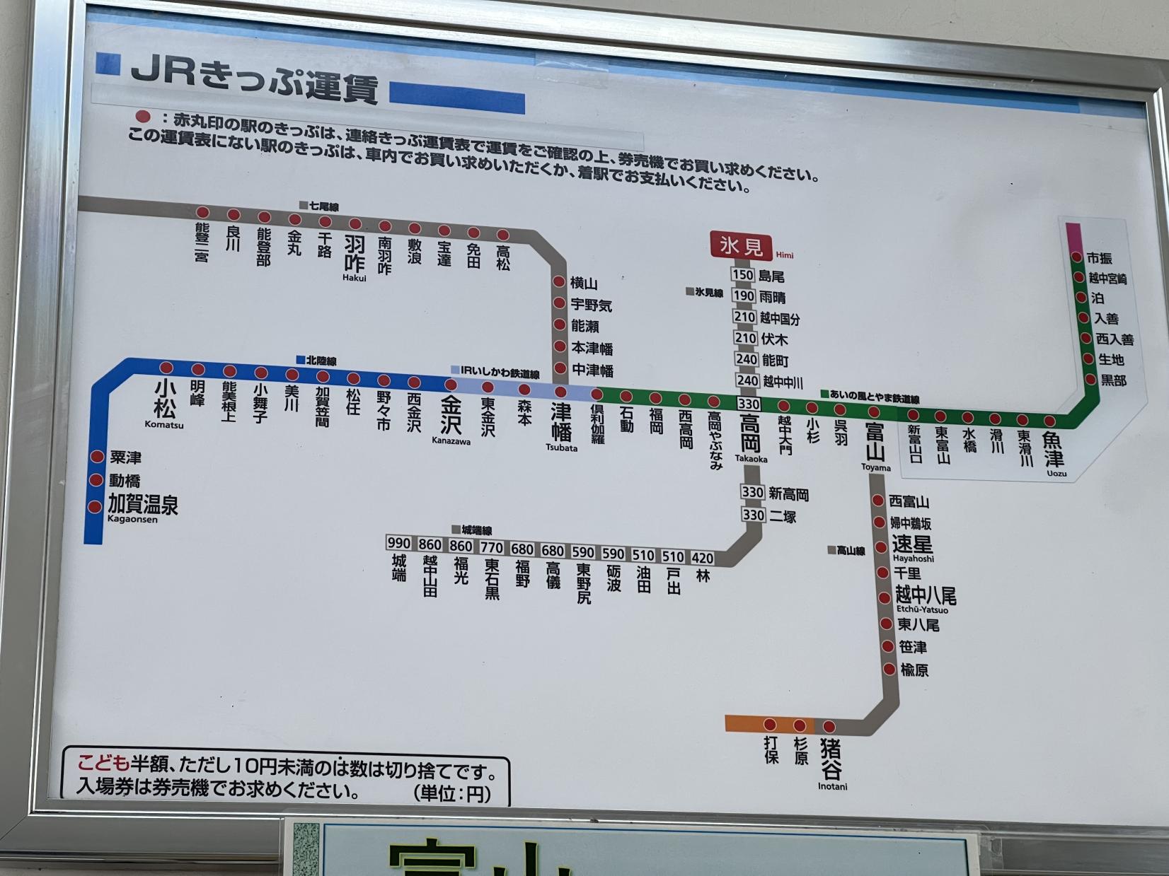 ●路線:JR氷見(ひみ)線 / あいの風とやま鉄道 / JR城端(じょうはな)線
