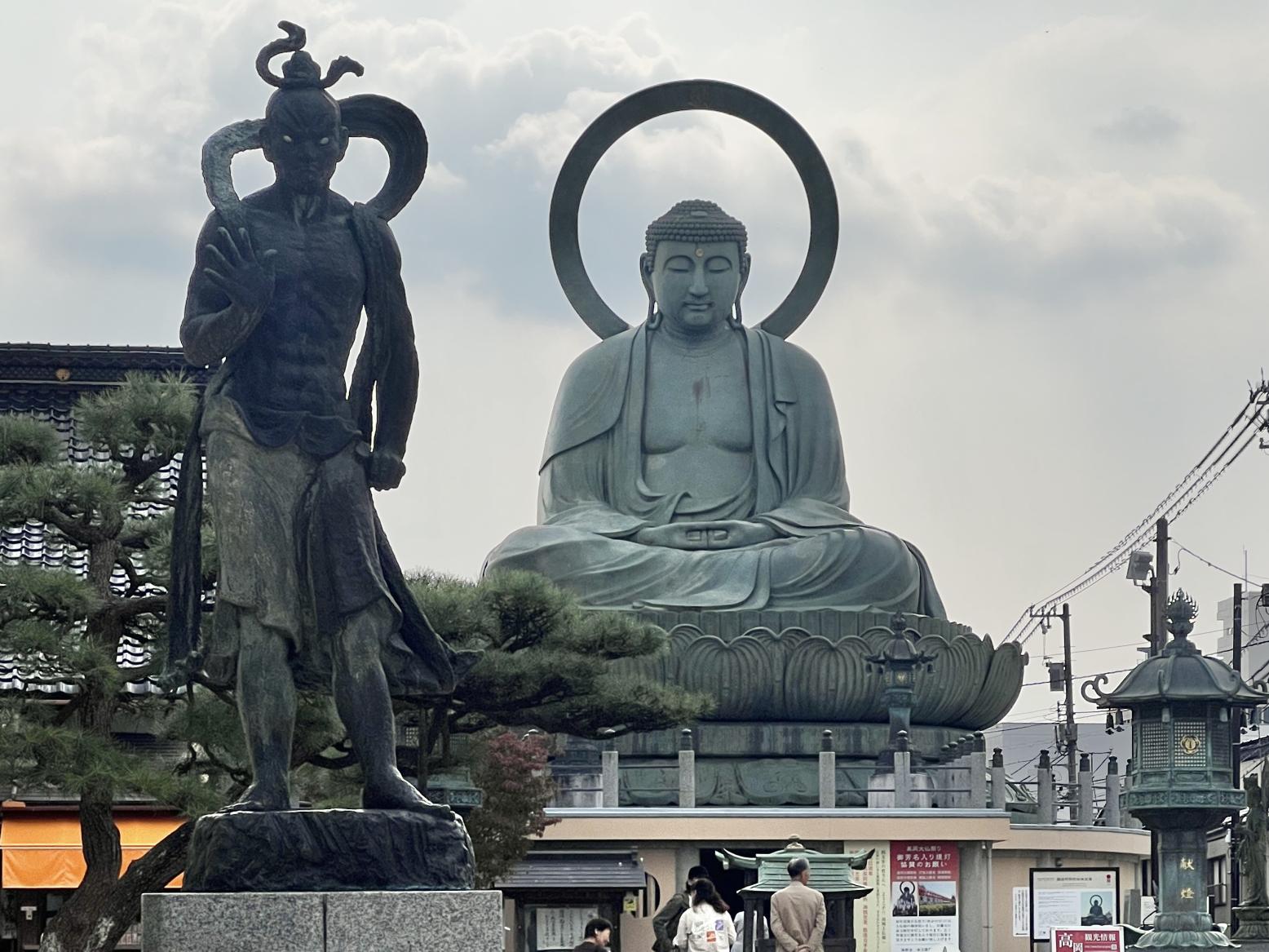 街のシンボル、高岡大仏は北口から徒歩で。南口からは国宝瑞龍寺と新高岡駅へ行けます。