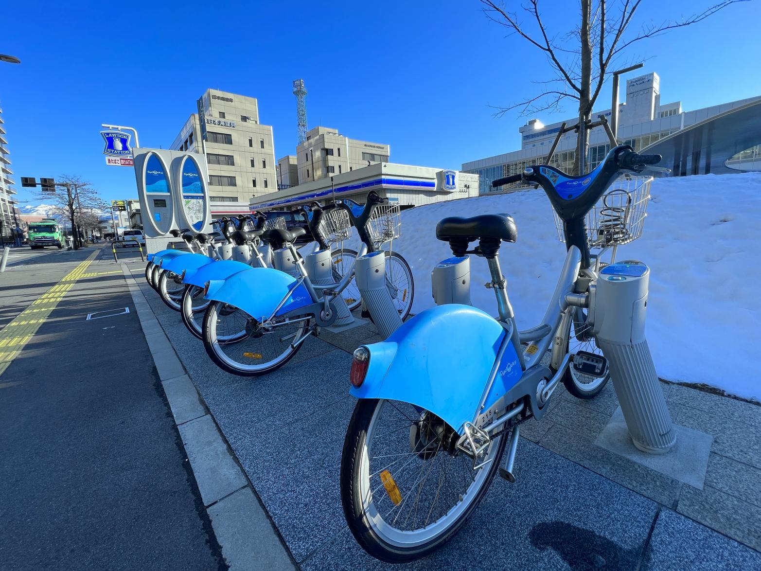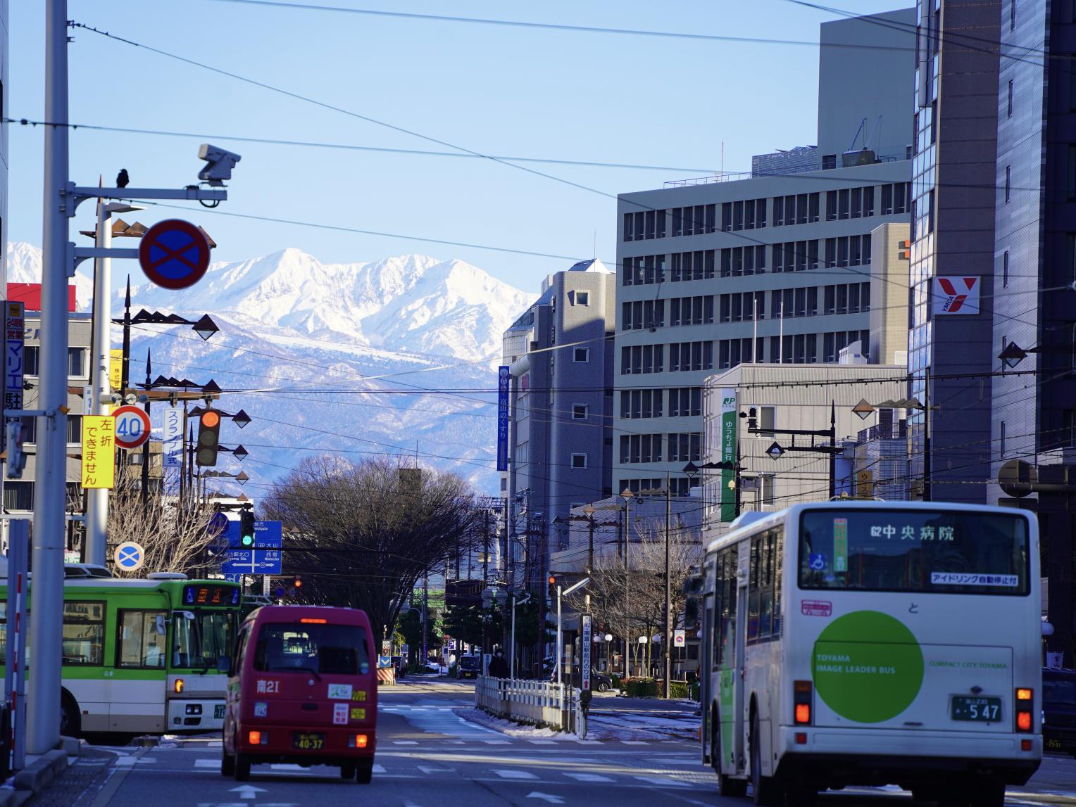 シェアサイクルや路線バス網も加わり、コンパクトシティと呼ばれる富山の景観が形成されています。
