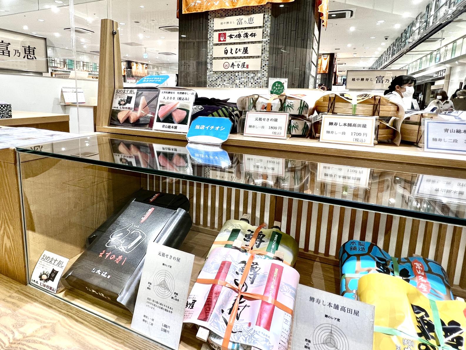 また、お土産所「とやマルシェ」は、ますの寿しを筆頭に県内の名産が購入できます。まさに「寿司といえば富山」!