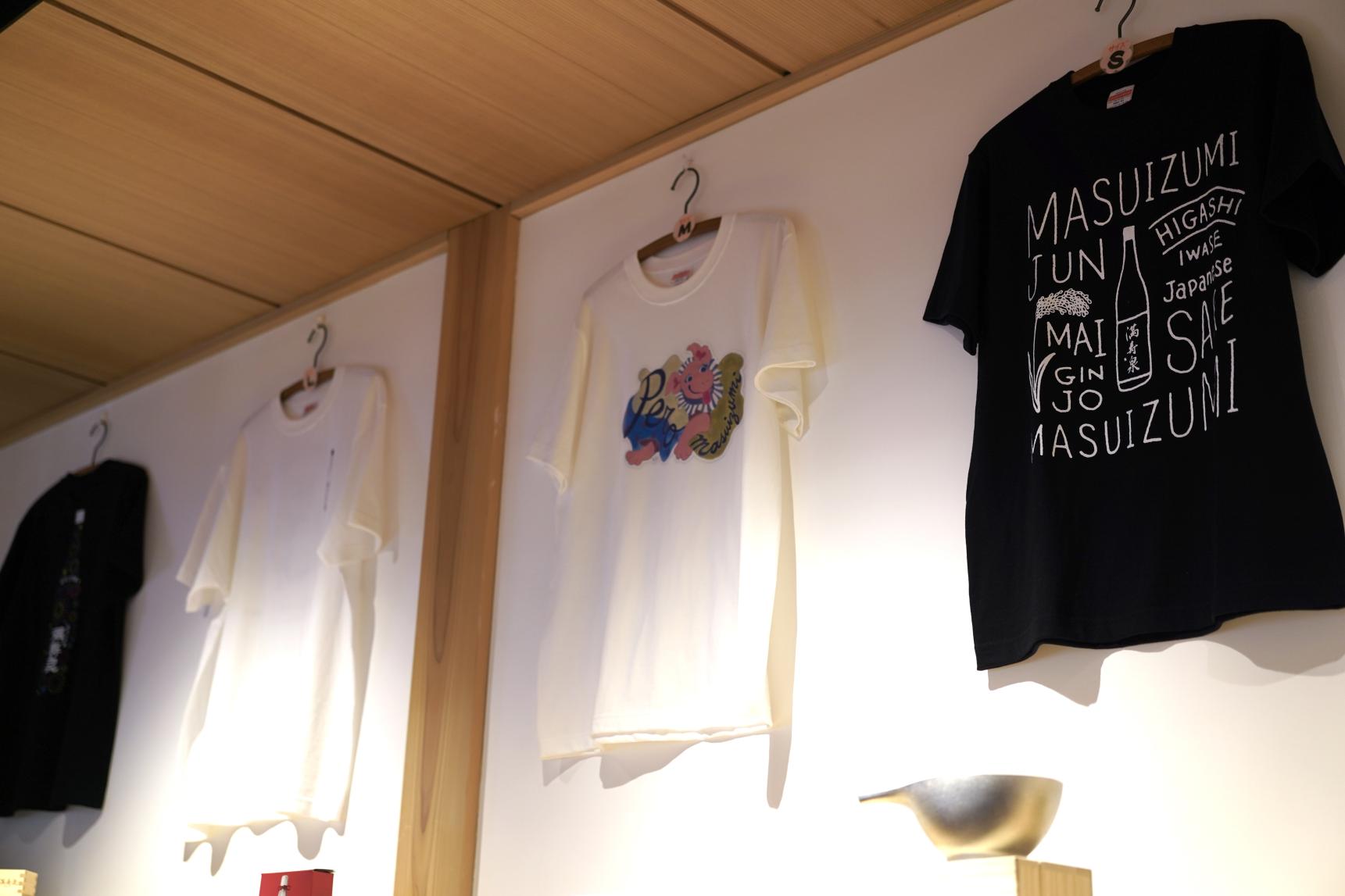 実は満寿泉関連グッズとしてTシャツも展開しており、根強い人気を博しているそうです。職人の着る「はっぴ」がモチーフだったり、酒瓶のラベルをプリントしたTシャツがインバウンド客に大好評なのだとか!