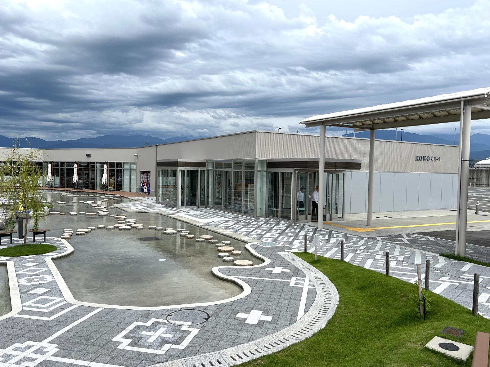 アパレル繋がりでご当地ネクタイや手拭いも見つけました。また、名水の里らしくプレイエリアにはウォーターパークを完備、夏の暑さを和らげてくれます。