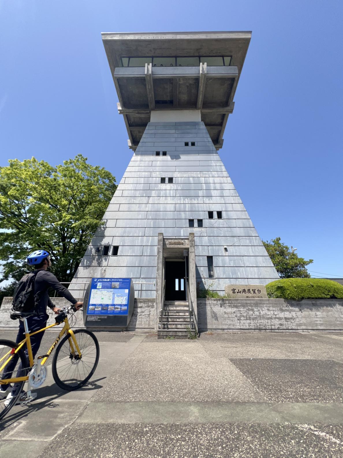 岩瀬エリアの外周路に出ると、ひときわ高い建物「富山港展望台」を発見。
