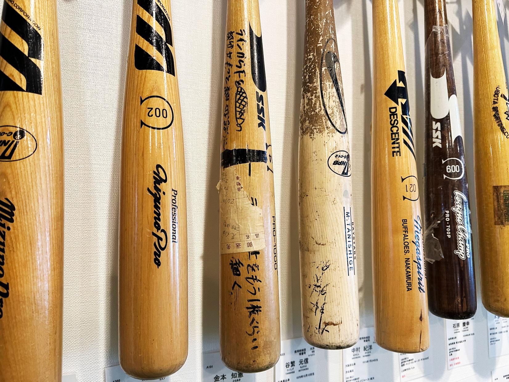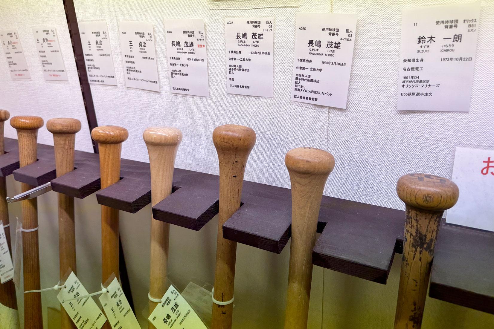 日本中の誰もが知っている、長嶋茂雄選手、王貞治選手、イチロー選手など、超有名選手のバットも展示してあります。