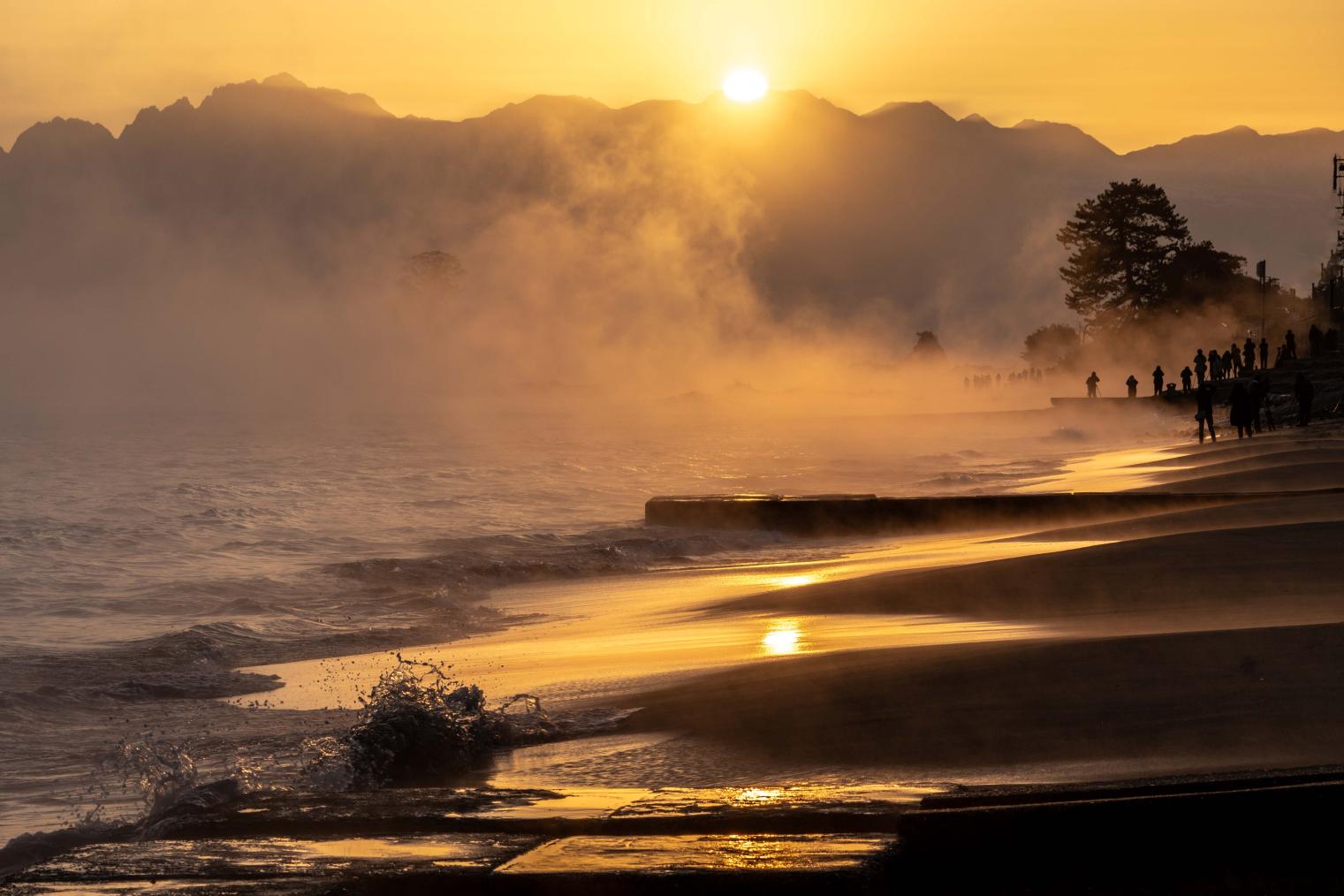 春は冠雪した立山連峰を眺め、夏は海で遊び、秋は海から立ち込める毛嵐が期待できます。