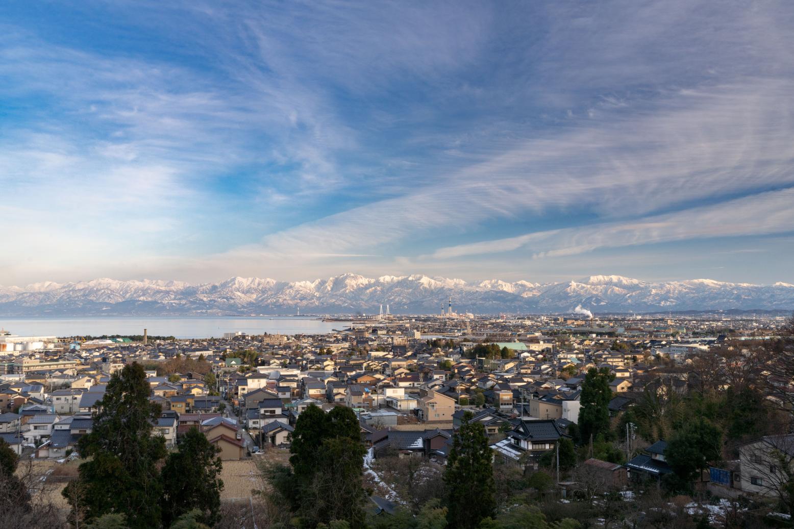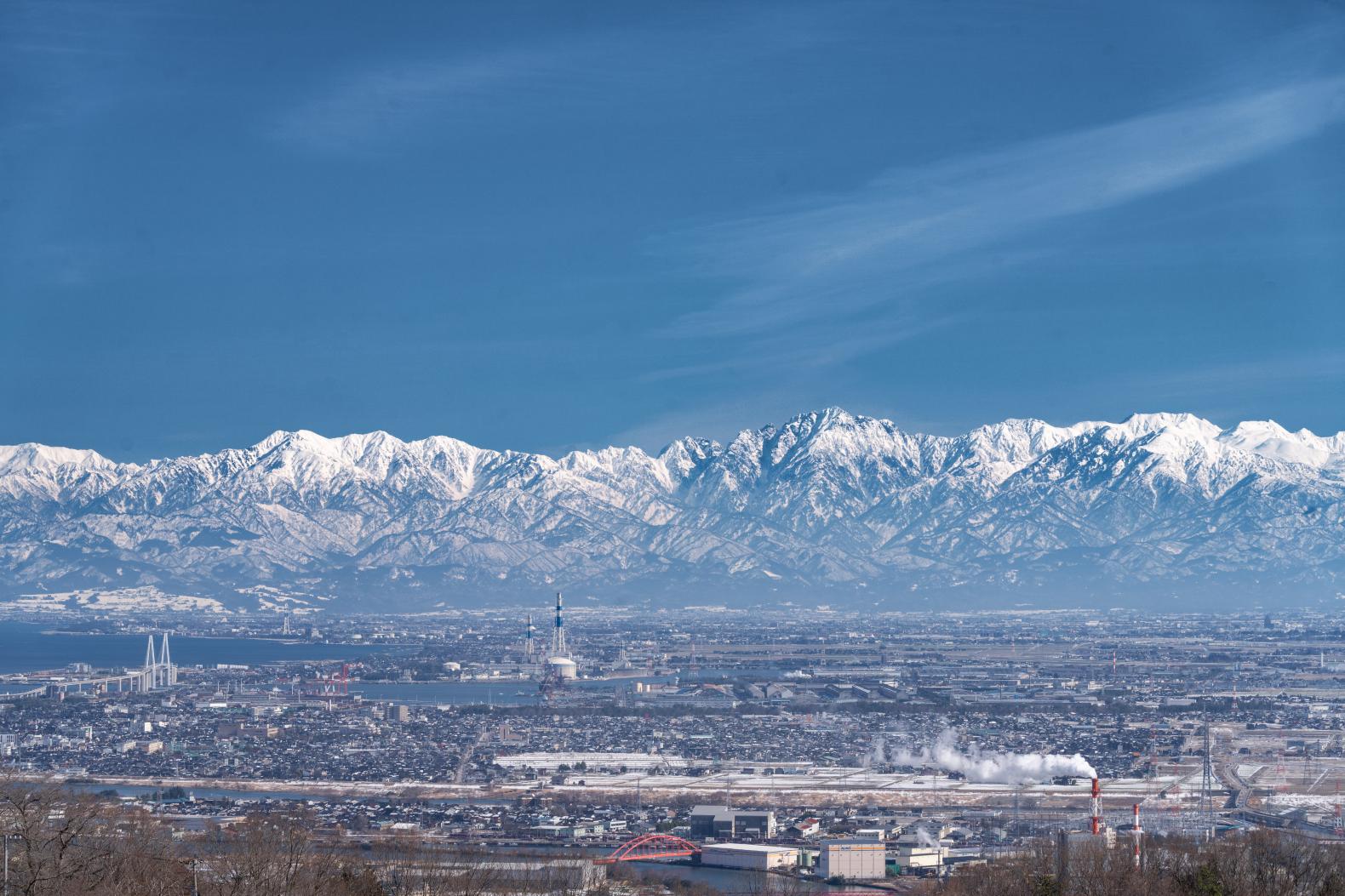 『雨晴海岸』は海抜0mから標高約3,000mの山々が見える世界でも非常に珍しい場所として有名ですが、周辺にも立山連峰が美しく見える場所があります。