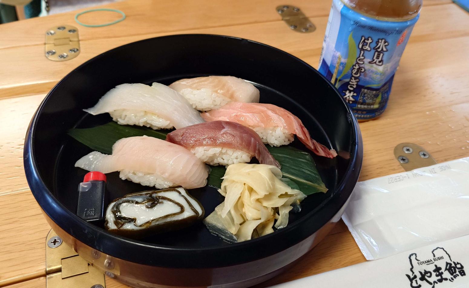 職人さんが乗車しており、ぷち富山湾鮨などの食事を提供してくれます。(予約方法は後述)