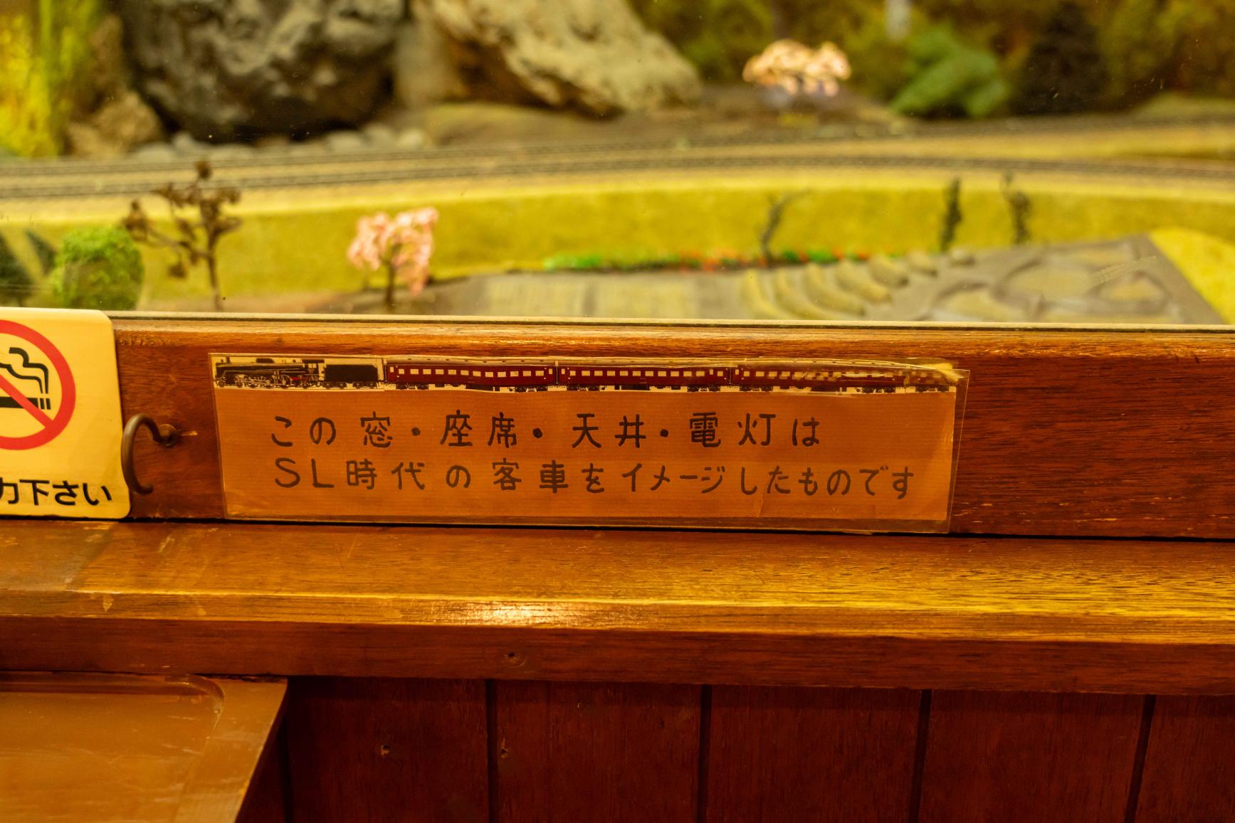 窓と座席、天井、灯りは客車をイメージして装飾したものとの事です。とても落ち着いた雰囲気で時間がゆっくり流れている感じです。
