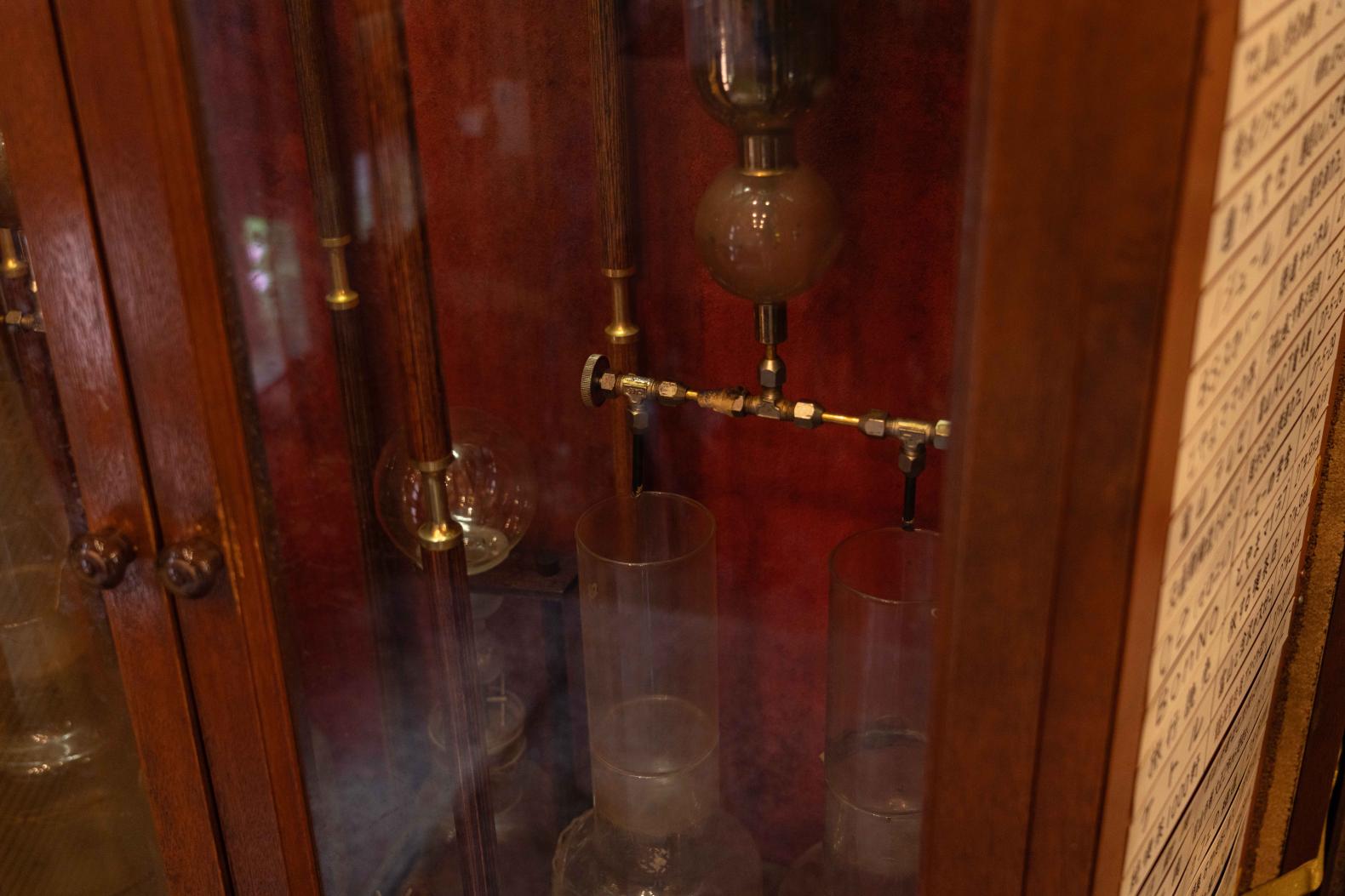 これで長い時間かけて抽出されたコーヒーが提供されています。来店のタイミングがあえば見られる可能性があるとの事でした。どんな感じなのか面白そうなので見てみたいものです。理科の実験器具みたいですね。