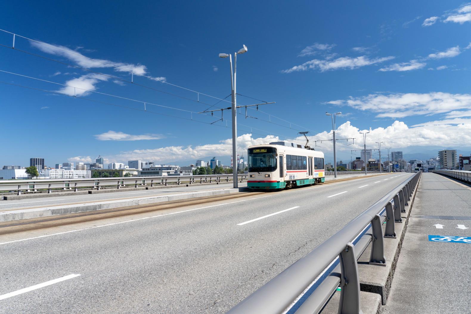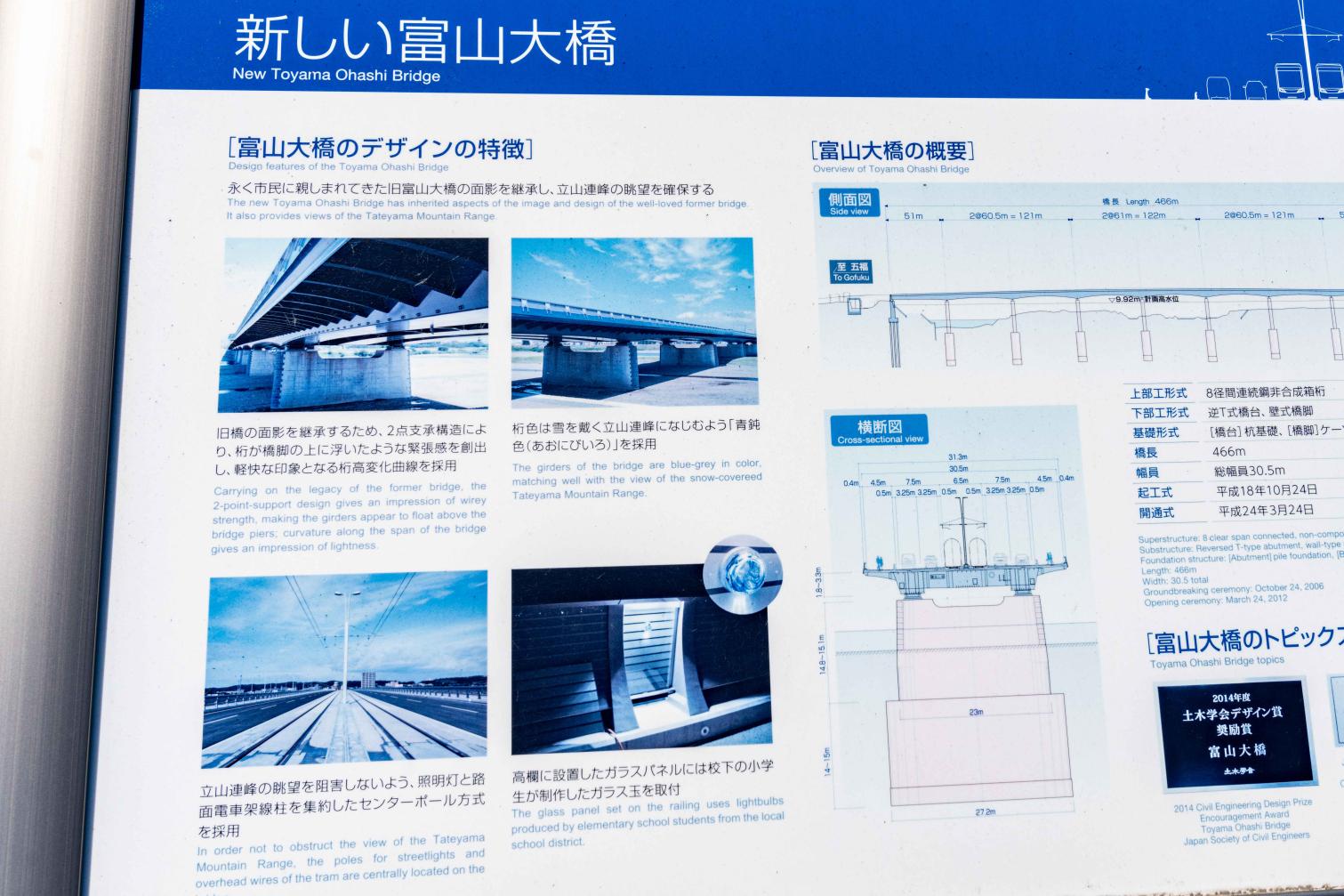 鉄道好きで来られたらすぐ近くの路面電車眺望スポットの『富山大橋』も渡ってみてください。立山連峰の眺望を阻害しなようにデザインされた橋で電車とのコラボは抜群です(見えていれば)