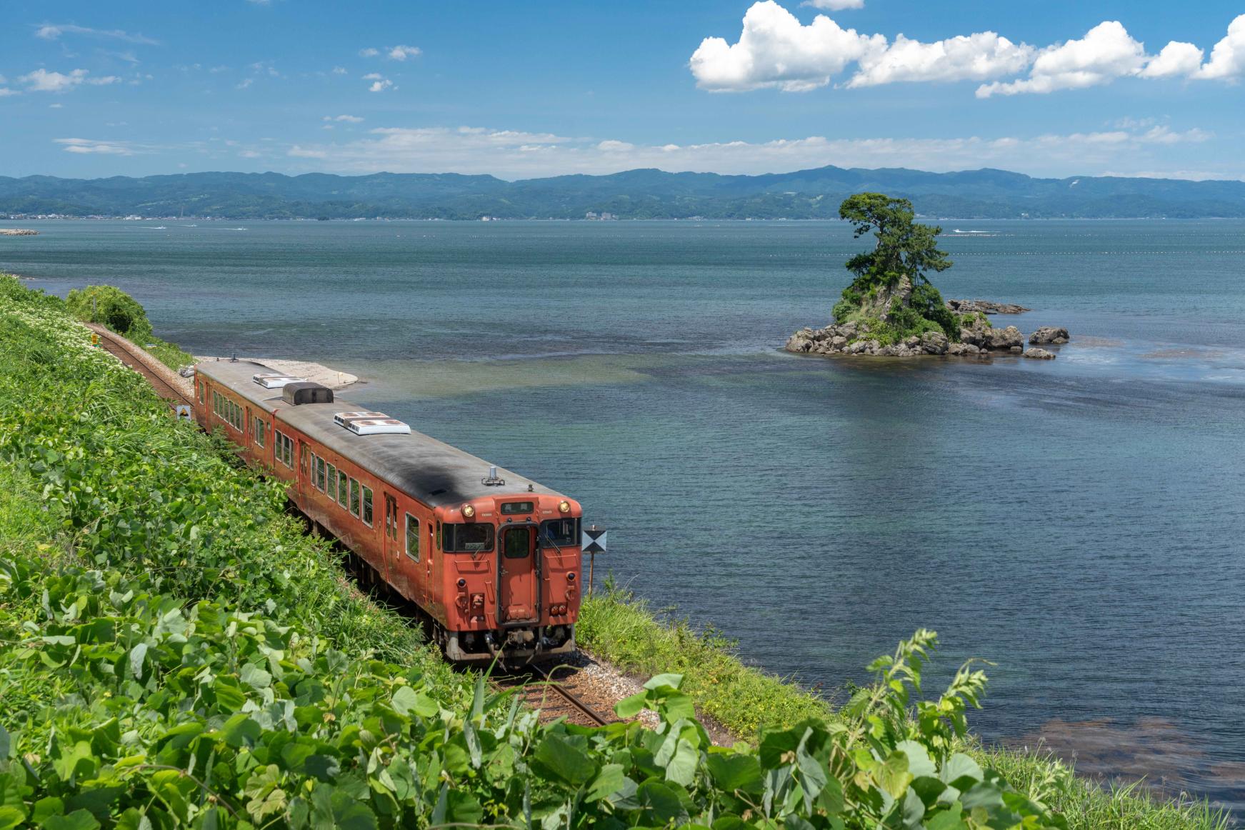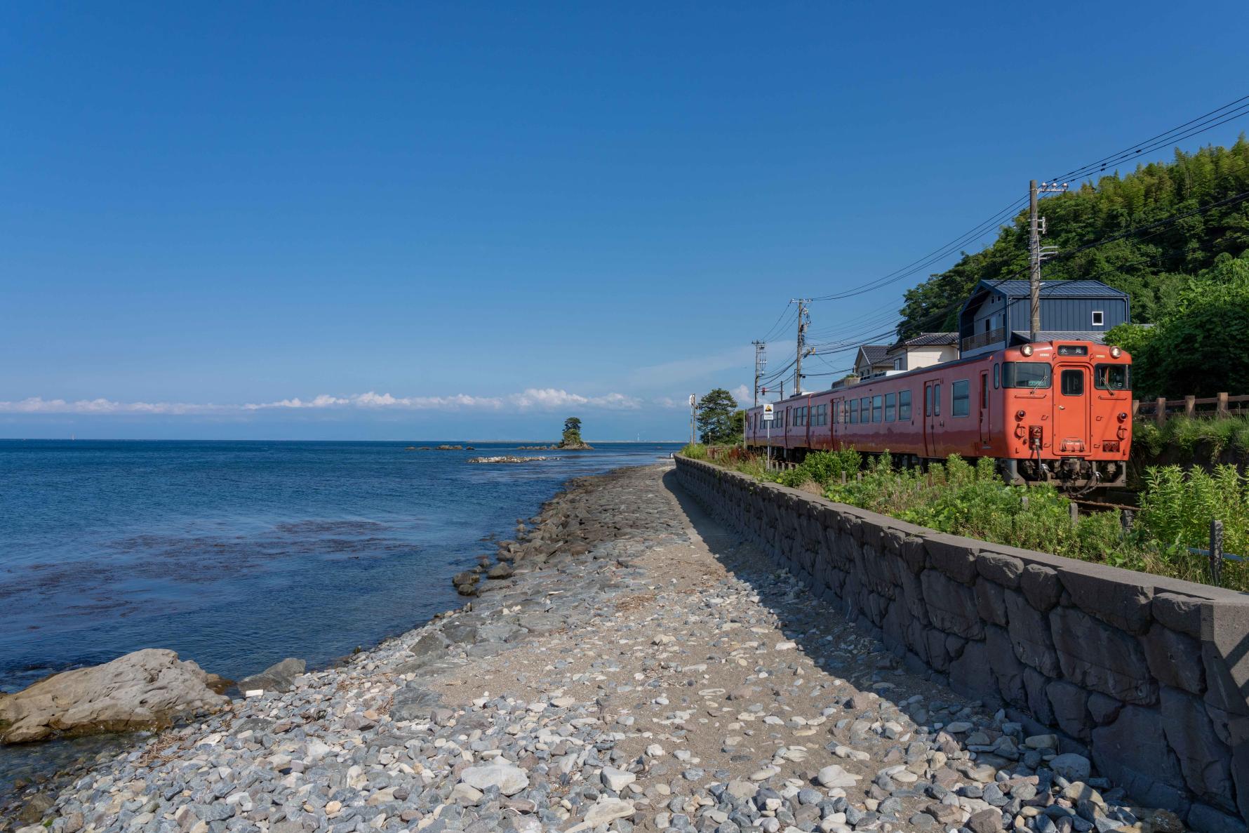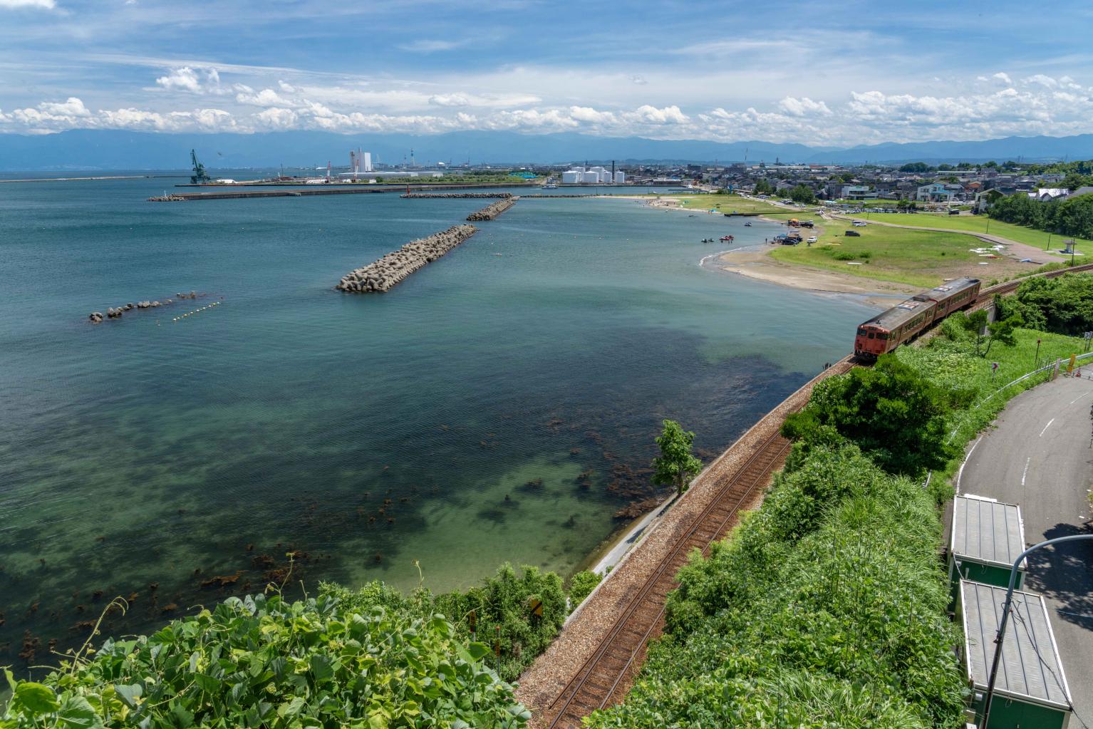 起点の高岡駅からしばらく市街地を走りますが、越中国分駅から海岸沿いを走りレトロな列車が海とマッチして、とても素敵な風景となります。