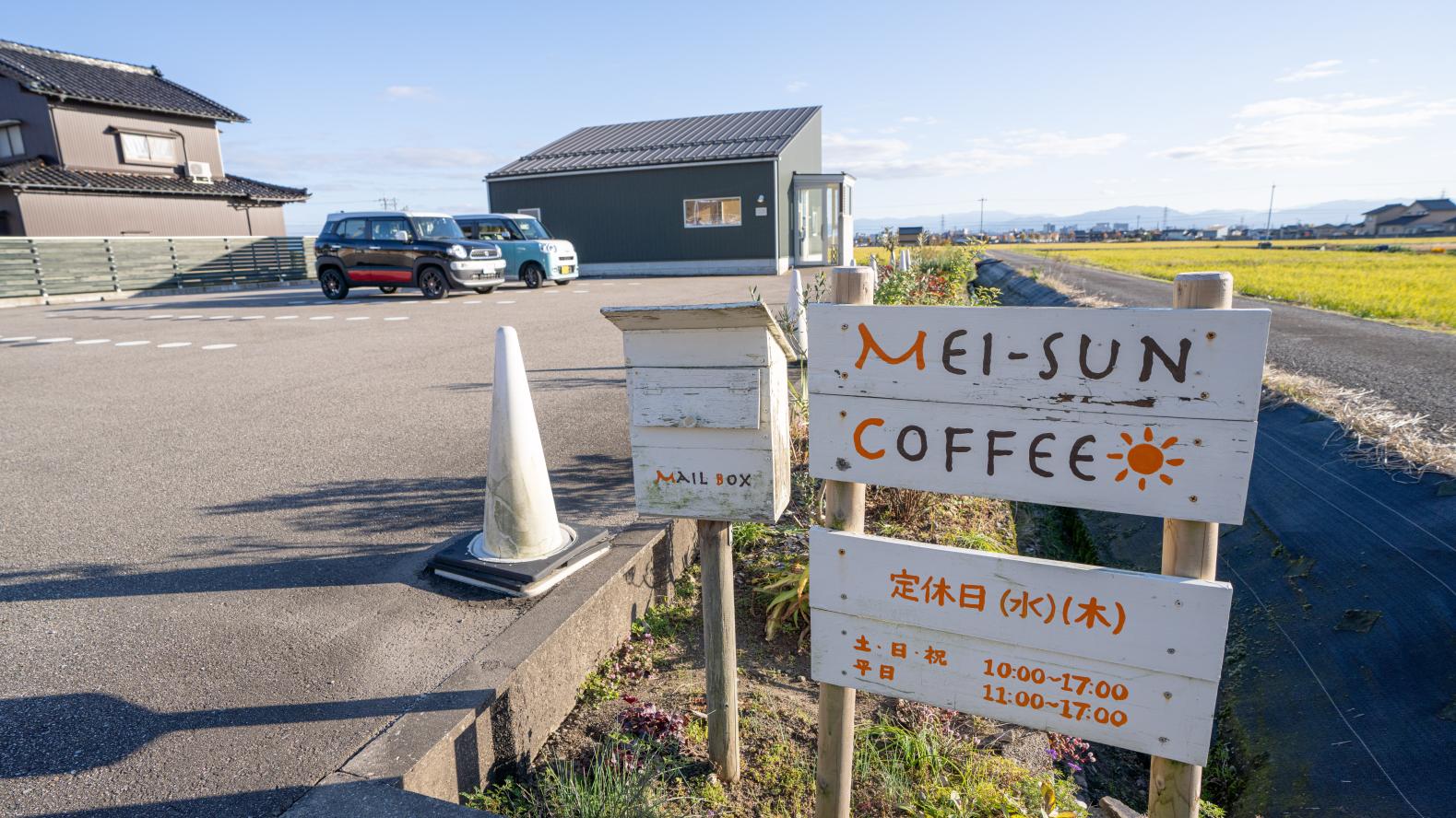 二上山の麓、田んぼの中に「MEI-SUN COFFE(メイサンコーヒー)」があります。