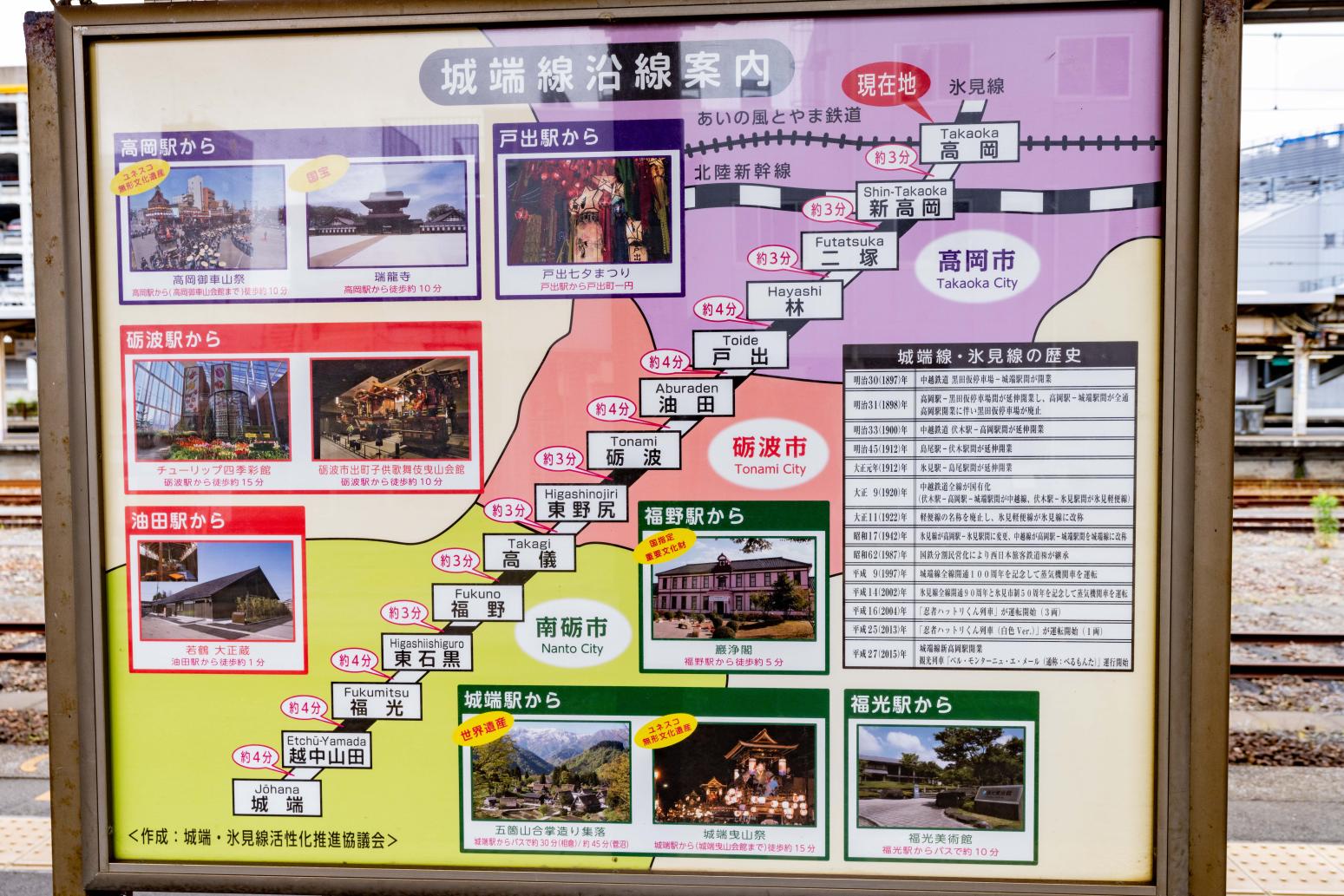 高岡駅から南へ伸びる城端線は、全長約29.9km、高岡市・砺波(となみ)市・南砺(なんと)市の14駅を結ぶJR西日本のローカル線で、富山県内で最初に開業した歴史ある鉄道路線です。