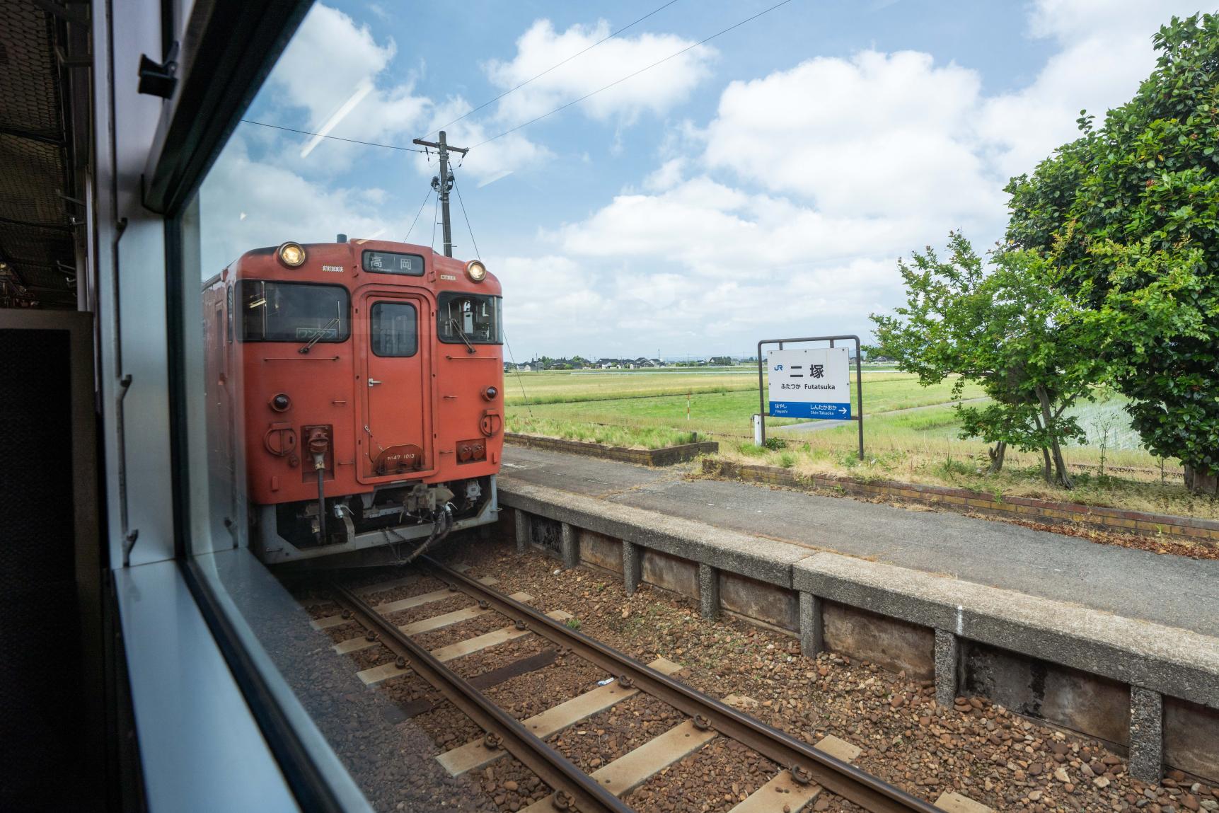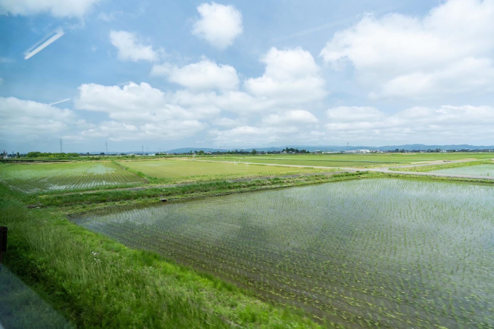 新高岡駅を過ぎると一面の田園風景。
