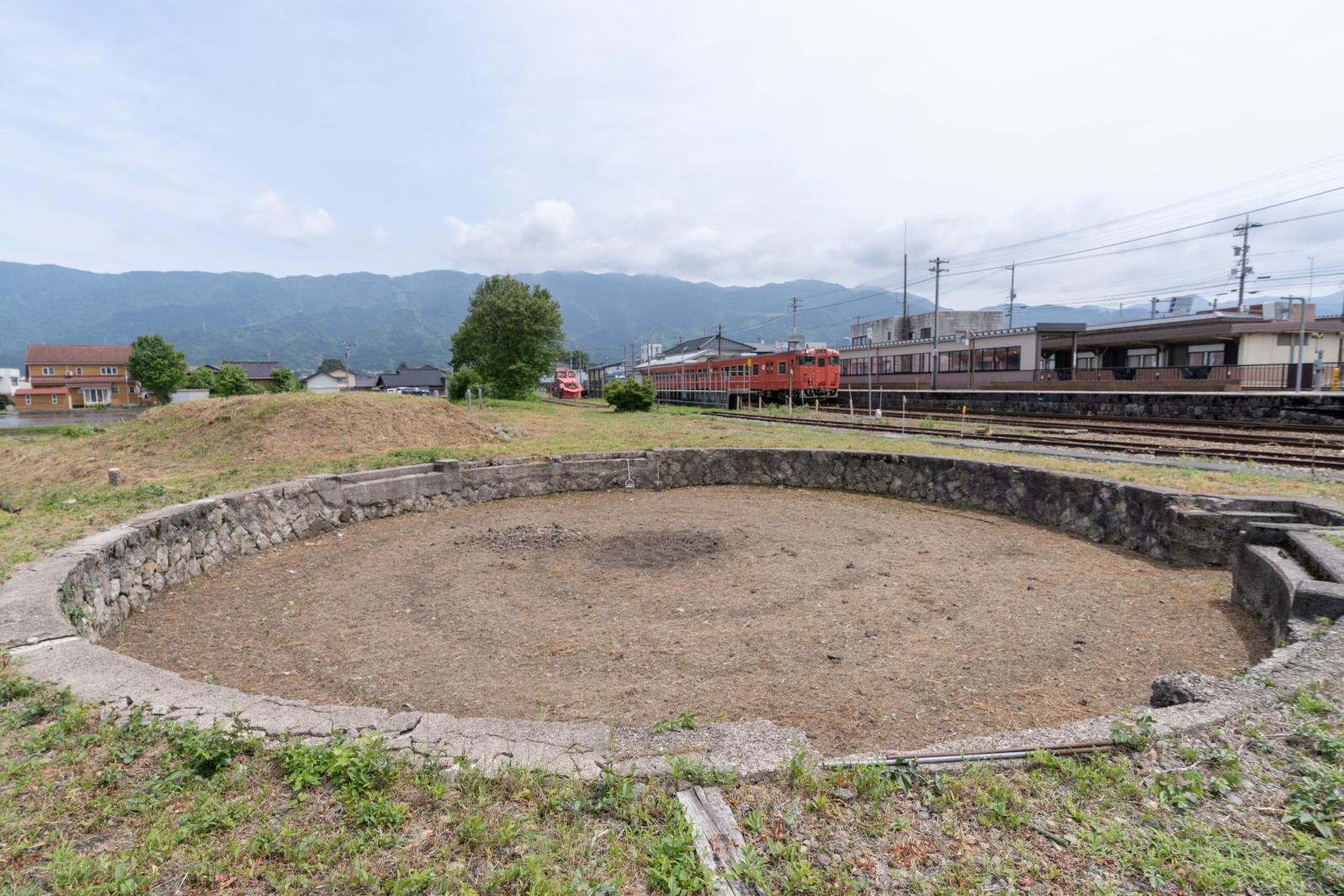 構内には昔使われていた機関車の転車台の跡も残っていました。