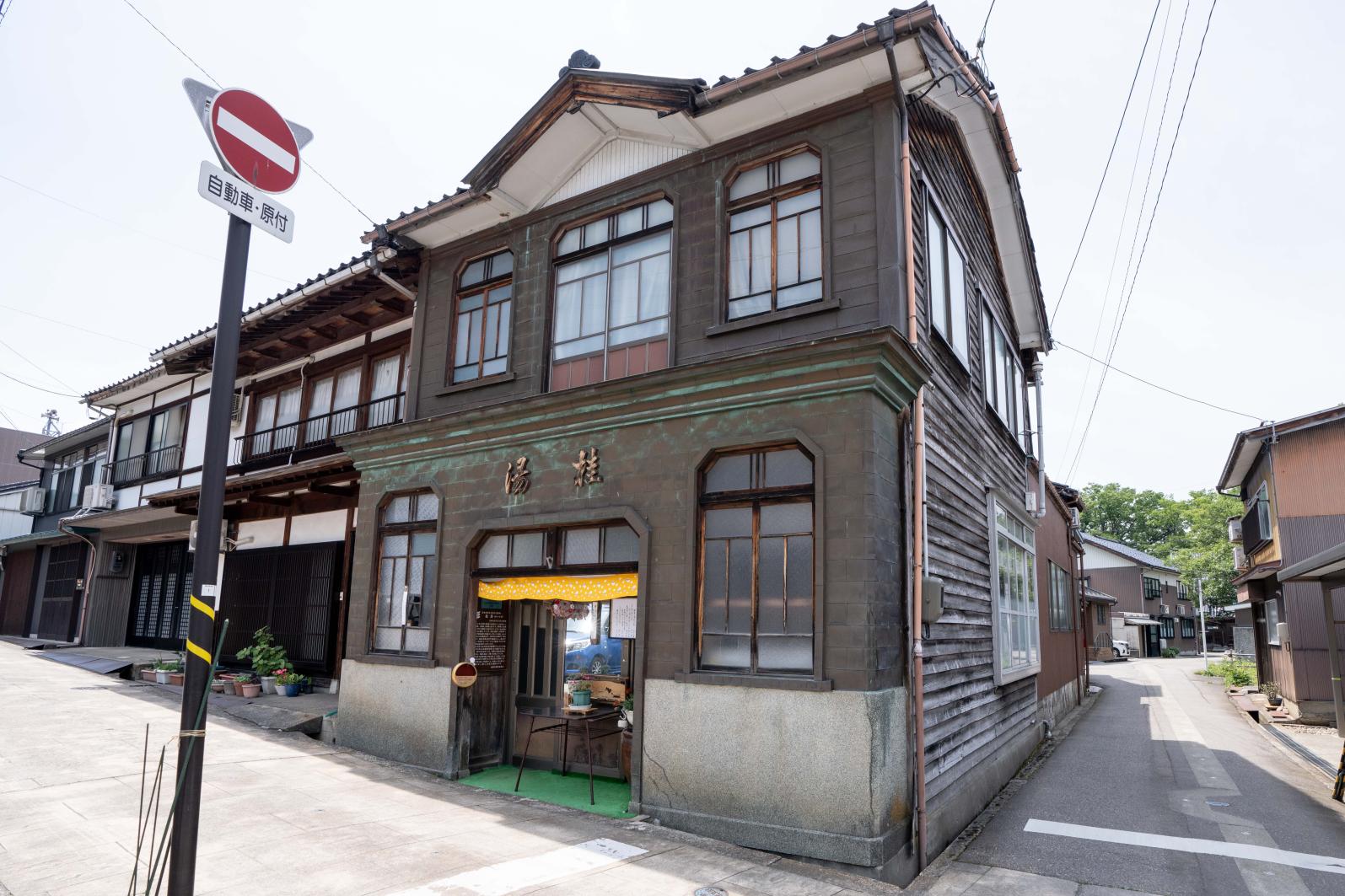 今町通りの土蔵群の先に、レトロな元銭湯の建物がありました。 おそらく当時のまま現存していたので知らずに見た私は、営業していると勘違いしてしましました。