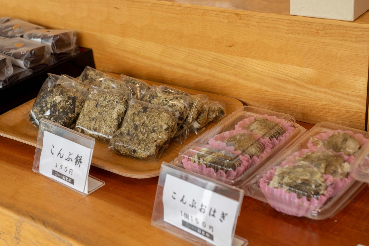 「昆布おはぎ」と「昆布もち」も販売しており、どちらも3種類の昆布の味や食感を楽しめるところにこだわりがあります。