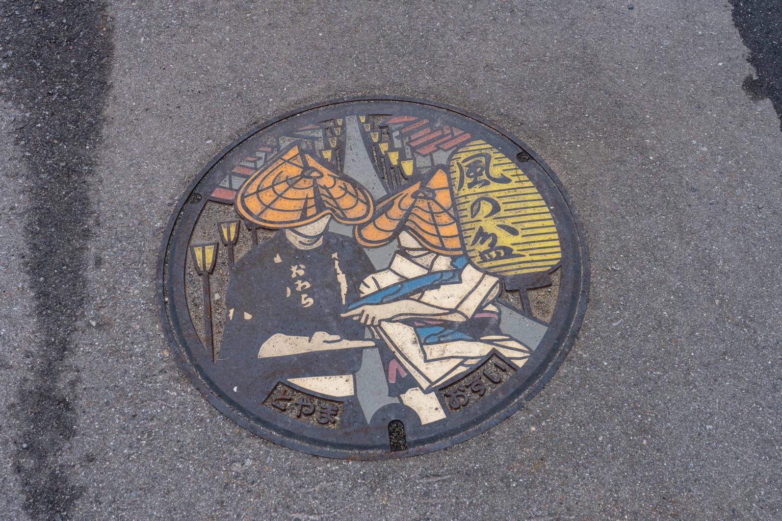 富山市八尾(やつお)にあるこのデザインマンホールは、カードを配布している『越中八尾観光会館(八尾曳山展示館)』の第3駐車場にある、この1カ所だけと聞きました。富山市中心部からは離れた場所ですが、毎年9月に行われる「越中八尾おわら風の盆」はニューヨークタイムズの「2025年行くべき52ヵ所」でも大きく紹介されていたお祭りなので、ぜひ訪れてみてください。