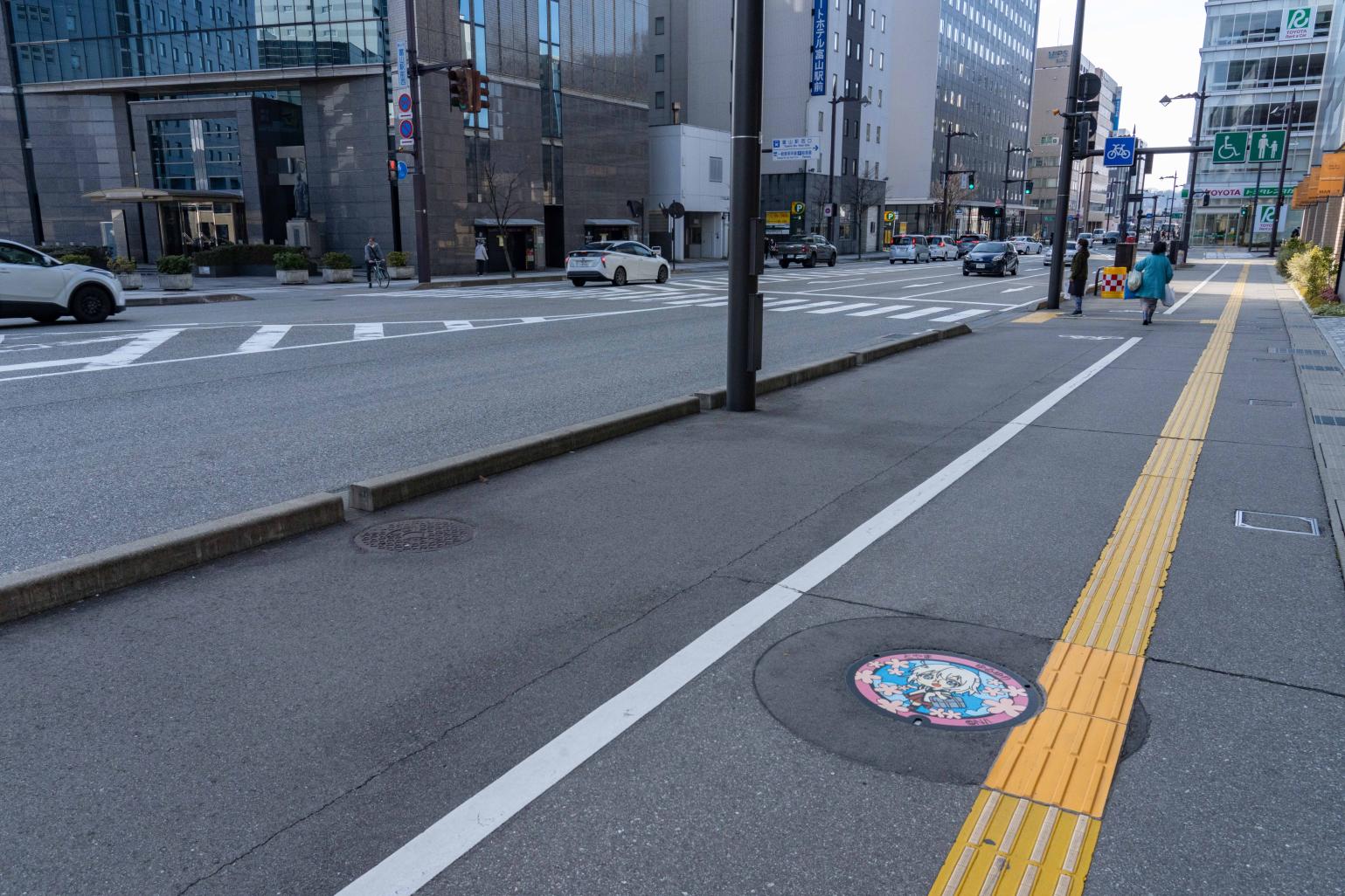 富山市内にはキャラクターとコラボレーションしたデザインなど、多彩なマンホールが設置されています。
