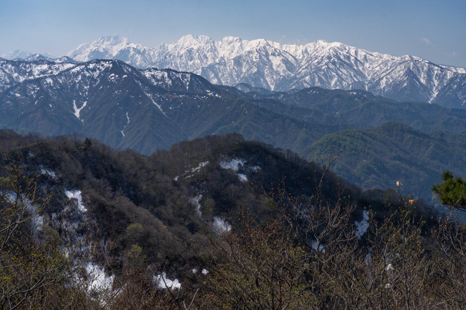 この山も大好きです。緩やかで歩きやすい登山道、頂上からは北アルプスが近くに見えます。また、あさひ舟川「春の四重奏」の時期に上から眺める事も出来ます