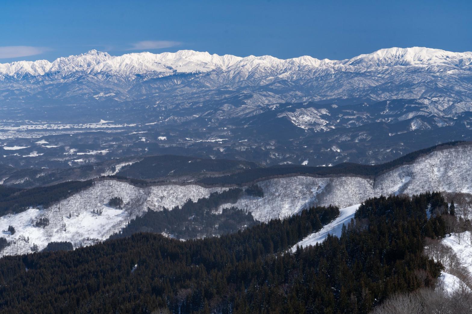 眺め:〇 [頂上からは立山連峰が近くに見え大迫力!]