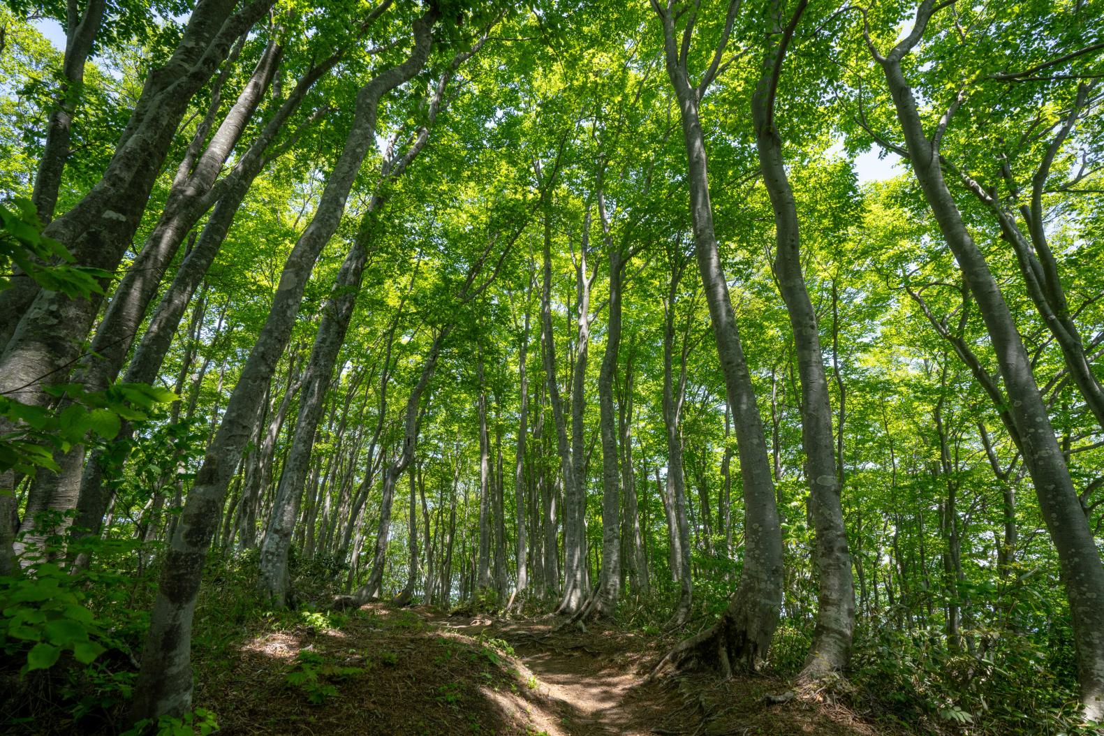 富山市側からは約1時間、ブナ林広場もあり気軽に登れます。砺波市側はしっかり山道を約2時間なので少し疲れると思います。専用の駐車場もありません。