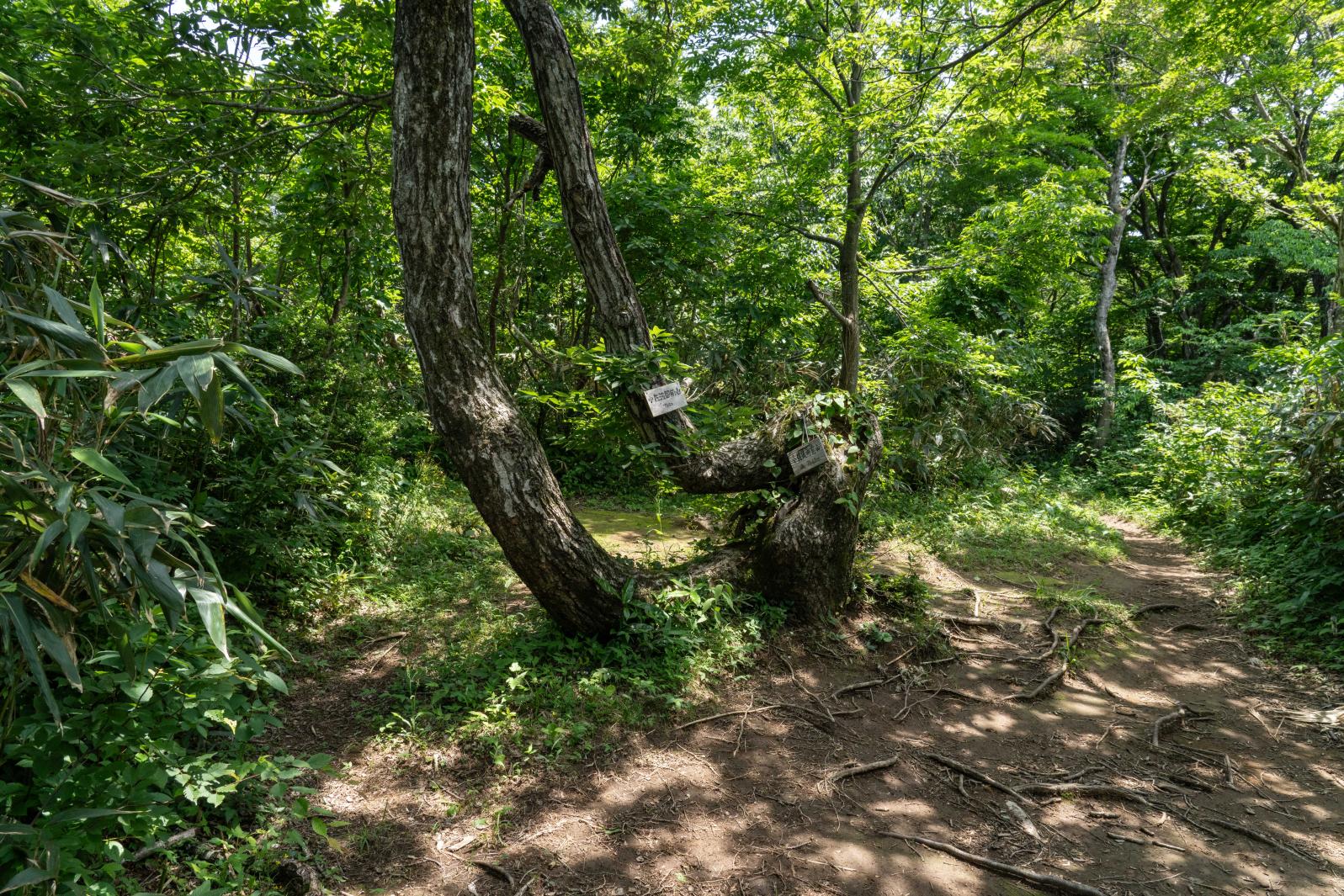 約60分で登ることができますが、分岐の看板『夏椿峠』左側登山道を行くと急登になるので、右から回って登ることをおすすめします(写真看板の現在地)。