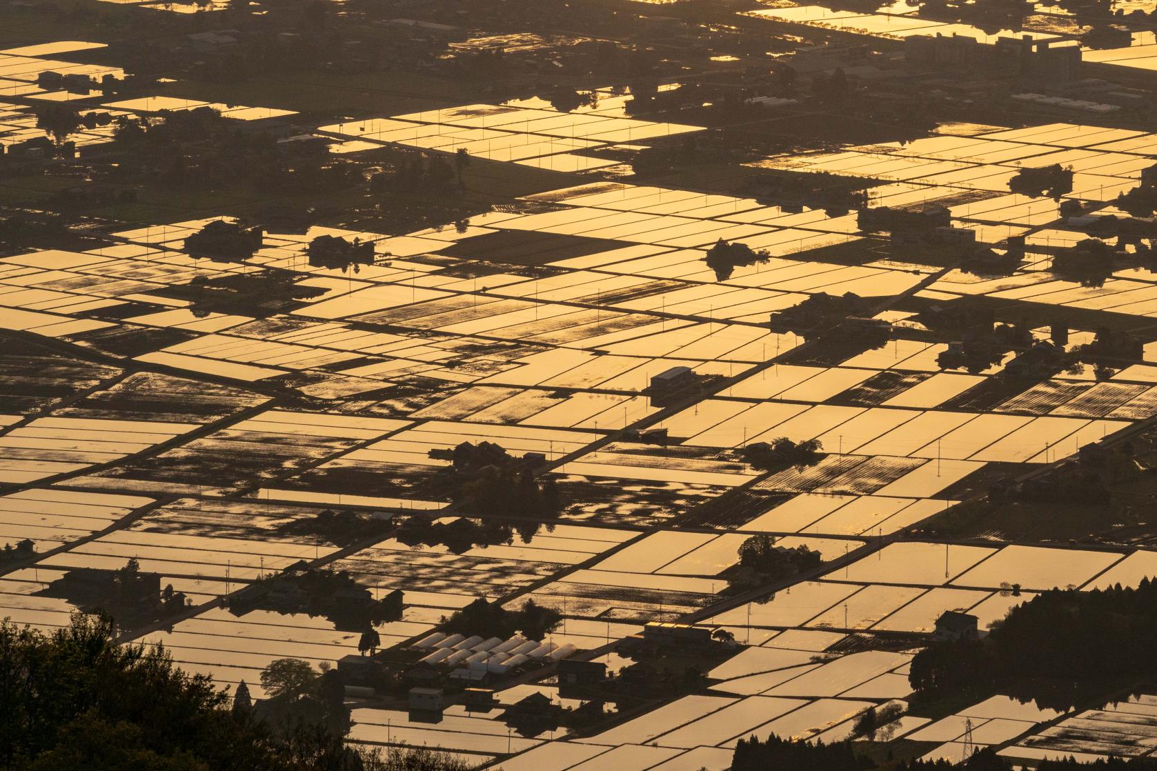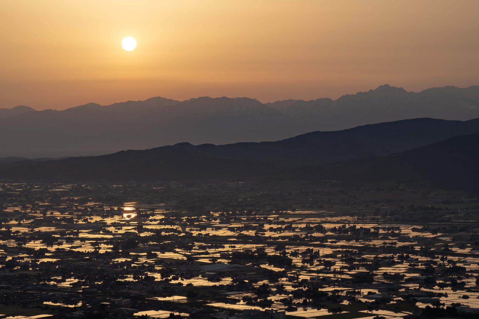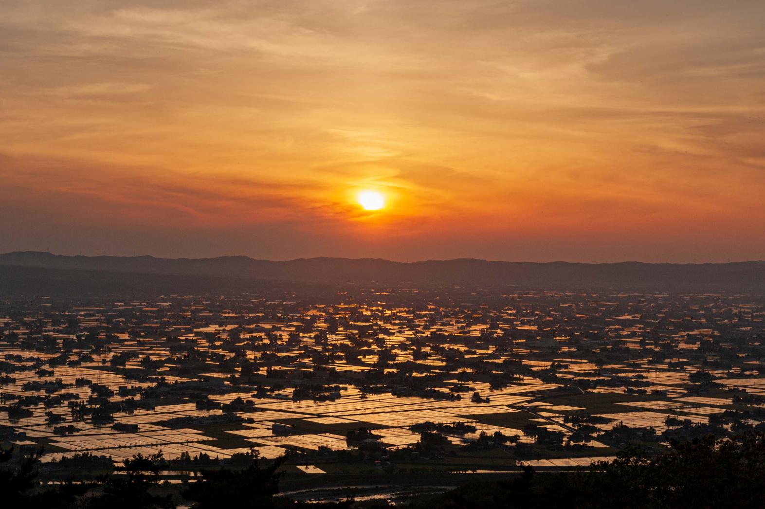 季節ごとに美しい田園風景を見る事が出来ますが、田に水を張った時期に高い場所から見ると平野が大きな湖に見え、水上都市のような不思議で壮大な絶景を見る事が出来ます。