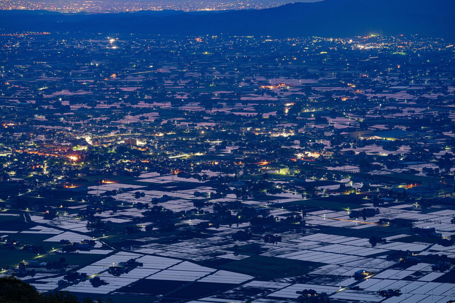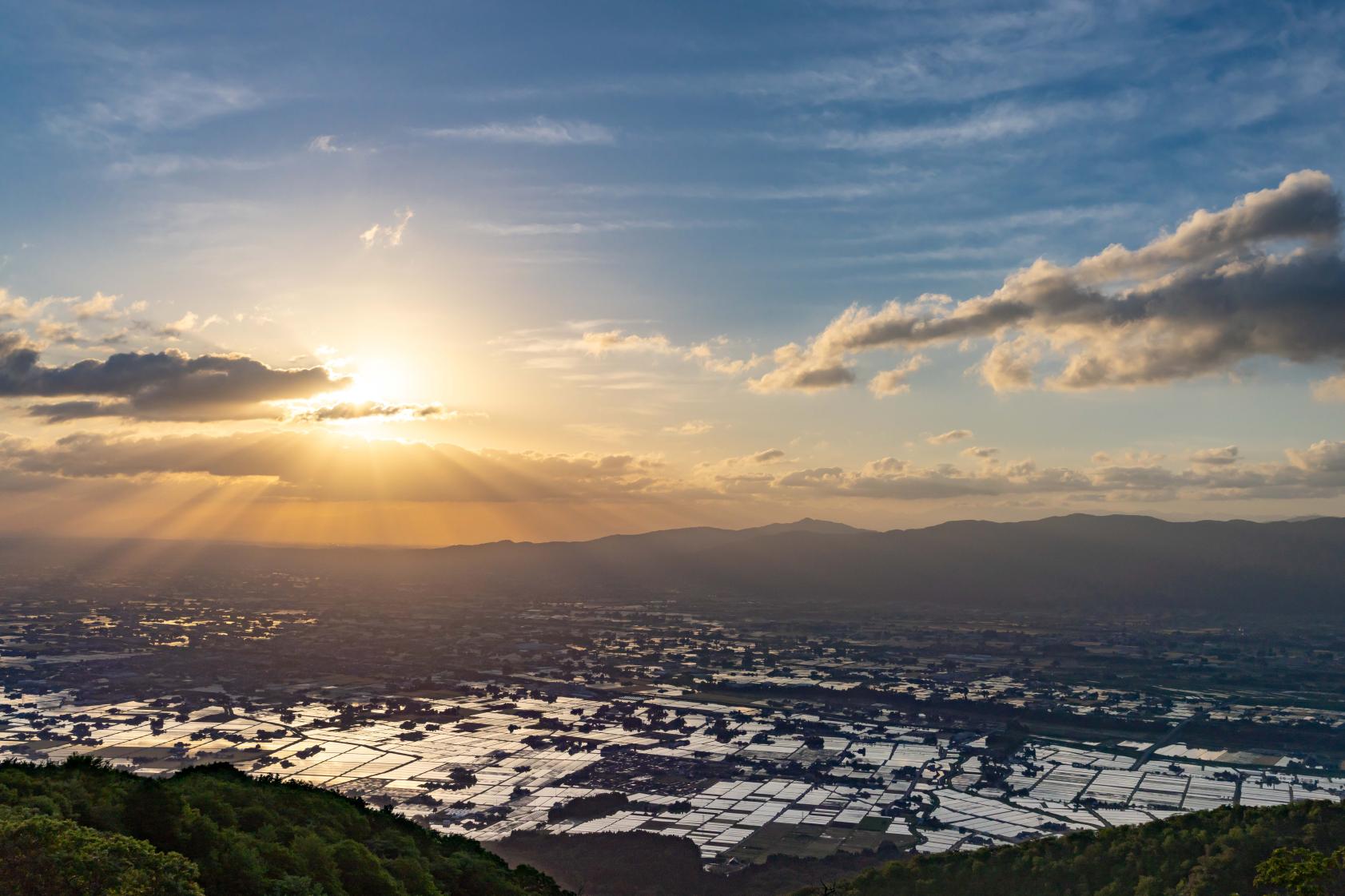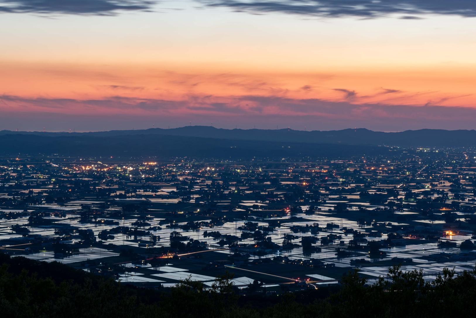 季節ごとに美しい田園風景を見る事が出来ますが、田に水を張った時期に高い場所から見ると平野が大きな湖に見え、水上都市のような不思議で壮大な絶景を見る事が出来ます。