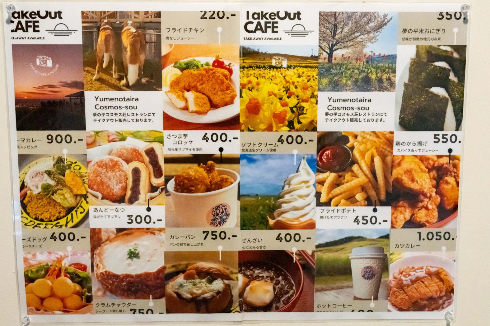 散居村展望台の手前にある「夢の平コスモス荘」はレストランも併設しているため食事を楽しむ事が出来ます。ドリンクや軽食、テイクアウトも出来ますのでお食事や休憩にぜひお立ち寄りください。