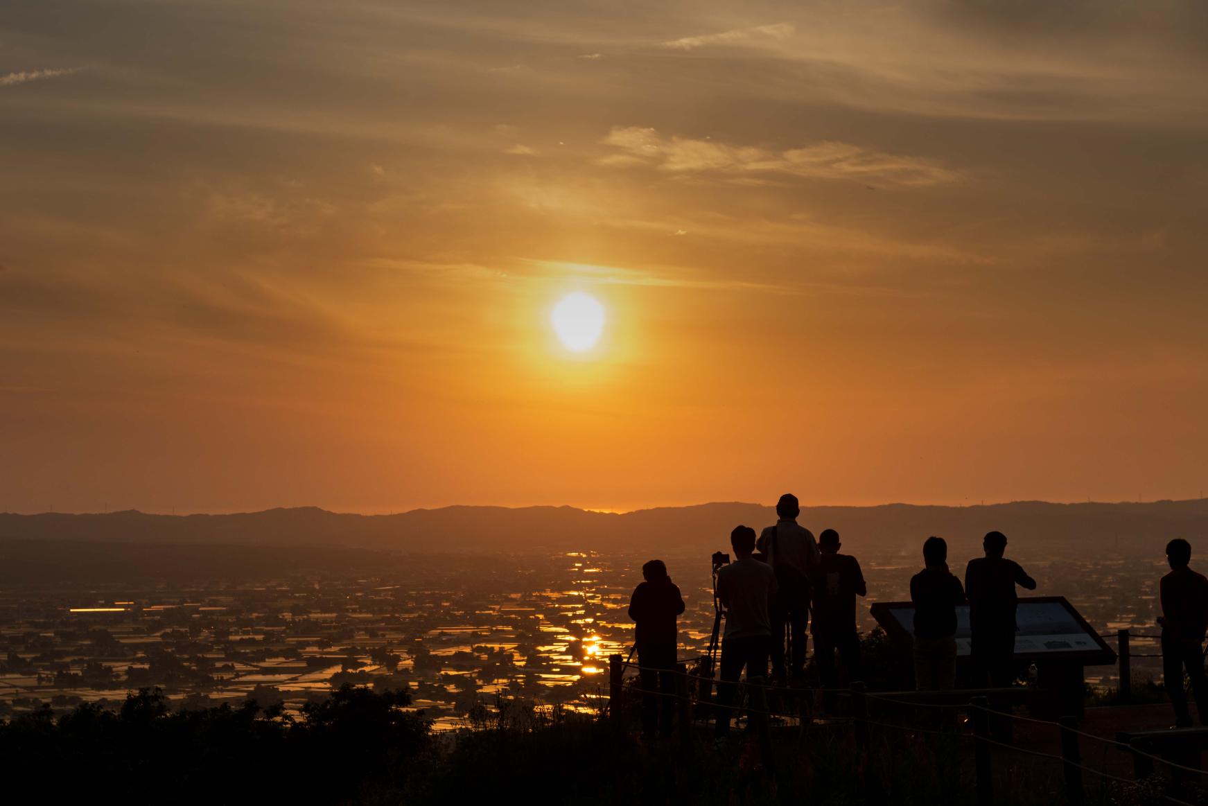 砺波平野の東側に位置しているため、西に沈む夕日を眺める事ができます。シーズン中の週末ともなれば多くの人が訪れる人気スポットで私も毎年見に行っています。毎年見たい風景です。