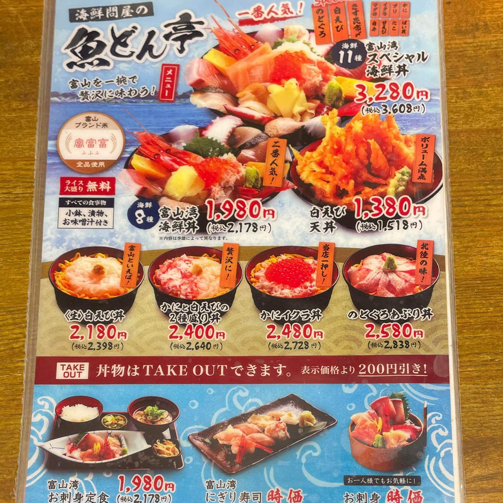 富山ならではの「ぶり天丼」もあり、刺身や照り焼きとは違ったぶりの旨味を堪能できます。