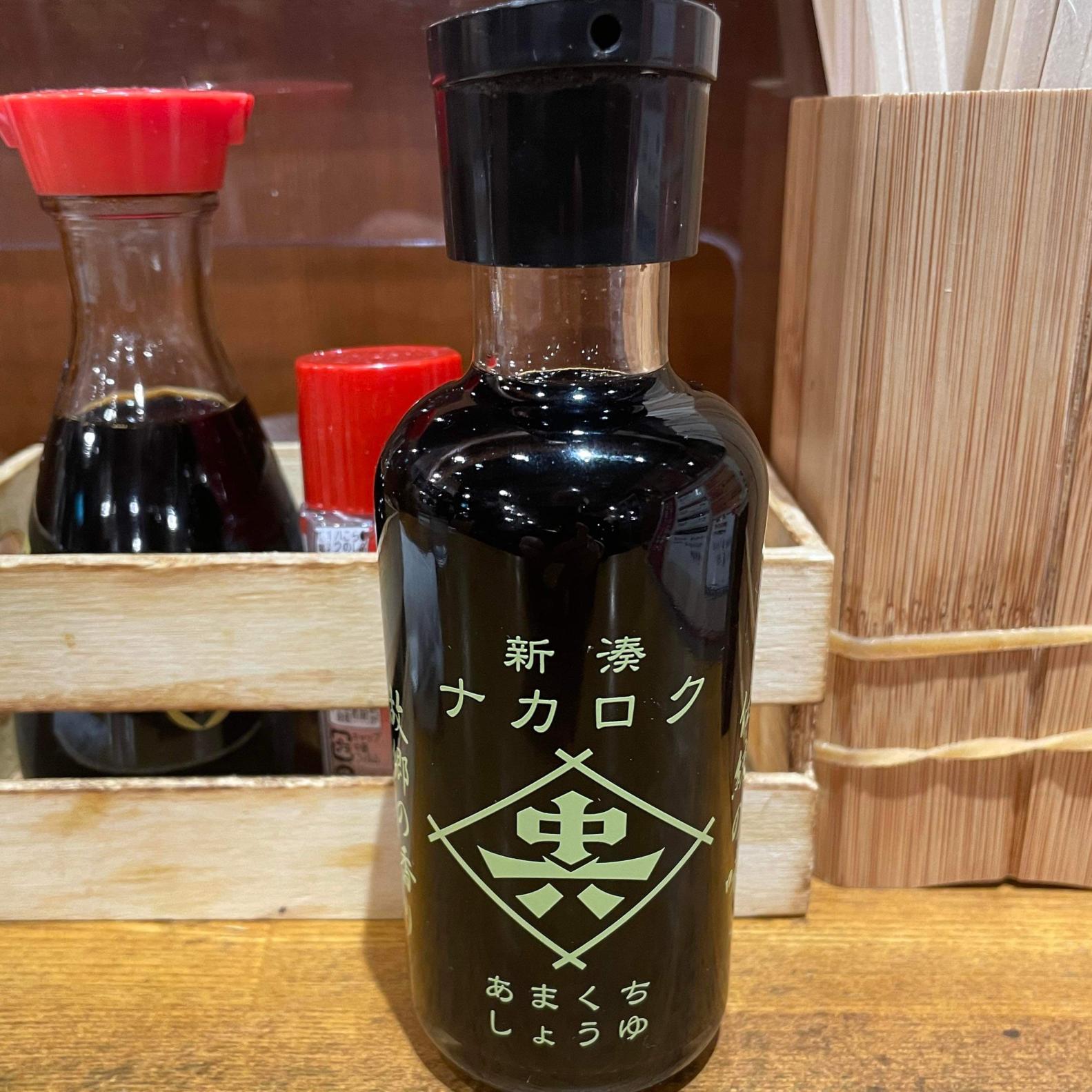 お店には新鮮な魚に合う「新湊ナカロク醤油」(甘口)が置いてあり、海鮮丼との相性がピッタリです。