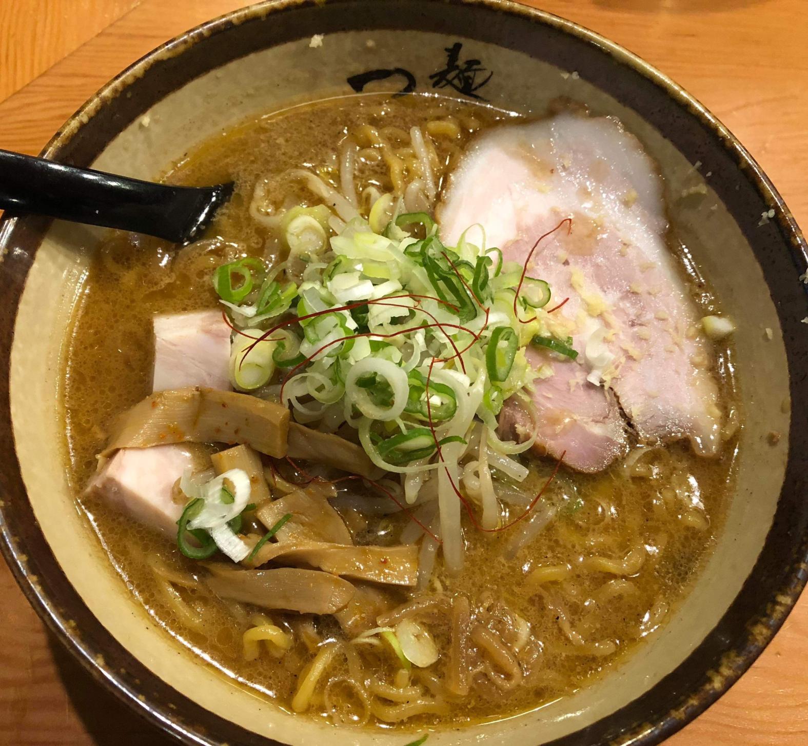 本店は行列が絶えない人気店で、『ミシュランガイド富山・石川(金沢)2016特別版』にも掲載。店主は札幌の名店「すみれ」で約10年修行。「すみれ」の店主が正式に弟子と認めた12名の「すみれオールスターズ」の一員。看板メニューの「味噌ラーメン」は、熱々の濃い味噌スープに中太縮れ麺が絡む「すみれ」直伝の逸品です。
