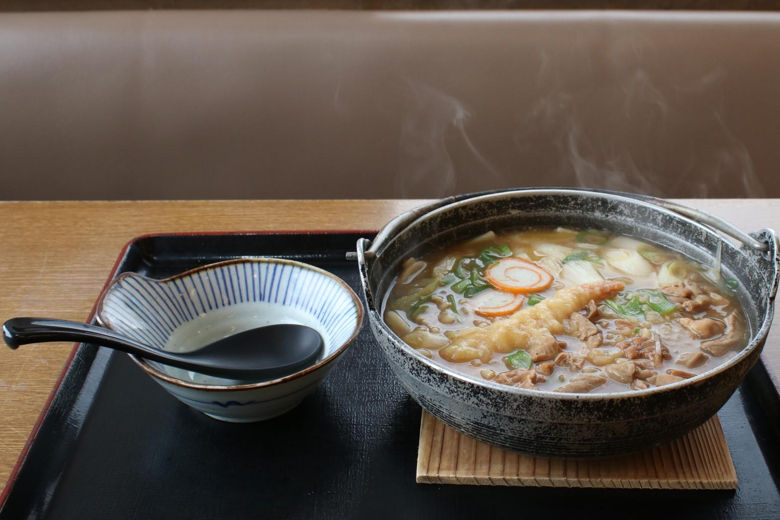 温かいのと冷たいの、どっちも食べられる麺類に加え、ご飯ものなどメニューも豊富。ごはんと麺のセットや定食が人気だそう。サクッと揚がった天ぷらや、さまざまな具材が入った冬季限定の鍋焼きうどんもおすすめです。