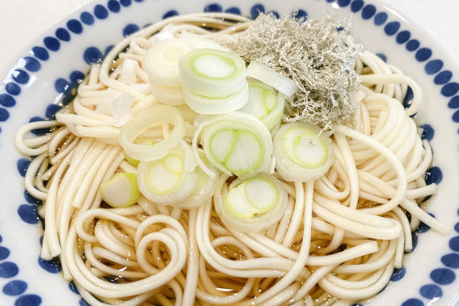 麺の茹で時間はお好みですが、表記されている茹で時間より短くすると、うどんのコシと喉ごしをより一層楽しむことができます。しっかりと冷水で締めた後、お好きな出汁、薬味、そしてこちらも富山名物である「とろろ昆布」をのせて食べてみてください!